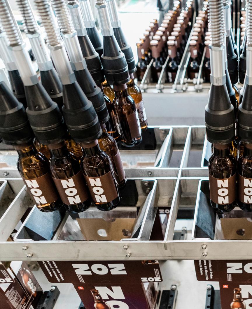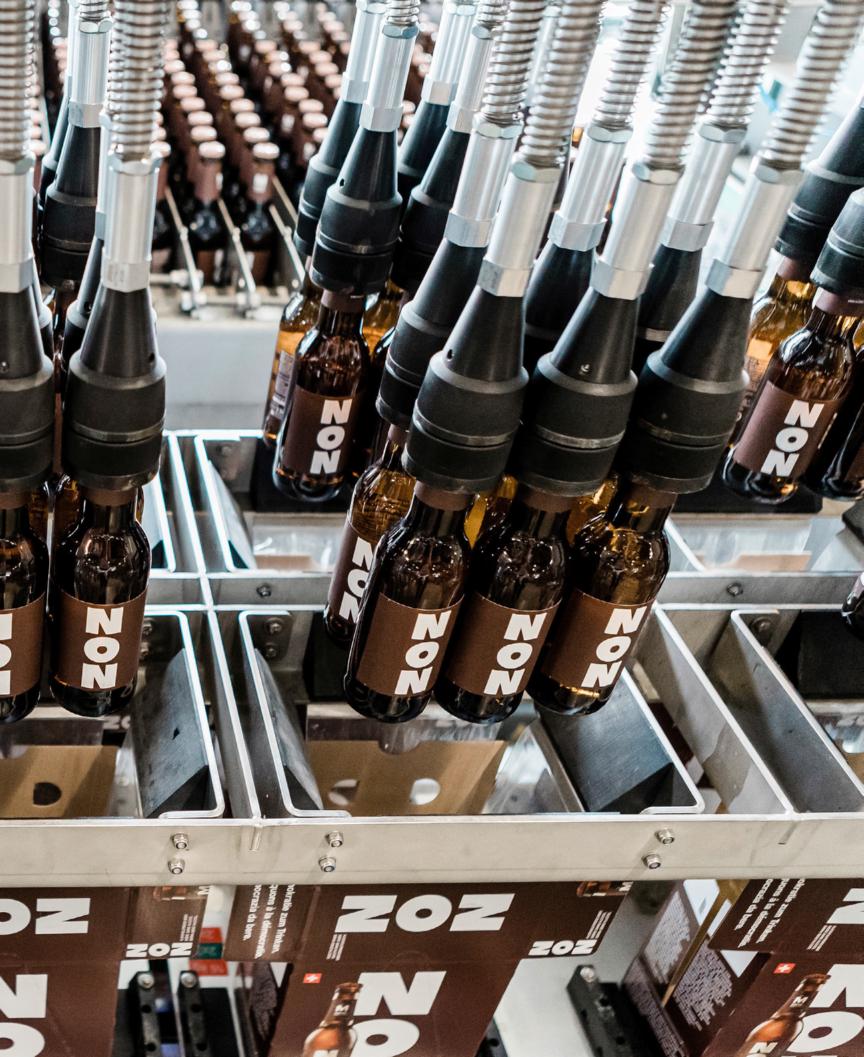 Le moment Migros La brasserie Schützengarten, à Saint-Gall, met en bouteille la bière sans alcool «Non», lancée à la suite de la votation du mois de juin, au cours de laquelle les coopératrices et les coopérateurs ont décidé de maintenir l’interdiction de la vente d’alcool à Migros. La première bière de l’histoire de Migros débarque cette semaine dans les magasins.