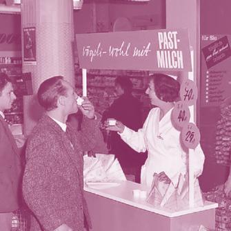 Flash-back Querelle autour du lait Acheter vite fait un litre de lait à la Migros? Voilà qui était impossible jusque dans les années 1960 en raison d’une réglementation qui limitait la vente de lait aux seuls magasins effectuant des livraisons à domicile. Pour dénoncer cette restriction, Migros a temporairement distribué du lait pasteurisé gratuitement dans ses magasins bâlois. Ce n’est qu’en 1965 que les règles du commerce du lait en Suisse ont été assouplies.