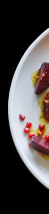 Préchauffer le four à 170 °C. Couper 800 g de courge en tranches. Mélanger un peu d’huile avec du sel et ½ cc de piment concassé. Râper du zeste d’orange et l’ajouter. En badigeonner les tranches de courge puis les faire cuire au four 30 min. Éplucher 300 g de betteraves et les débiter en morceaux. Couper une orange en rondelles. Ajouter le tout à la courge en milieu de cuisson. Sortir du four. Pour la sauce: expri mer le jus d’une orange et le mélanger à de l’huile, du persil et des graines de gre nade. Dresser les légumes cuits avec 150 g de chicorée rouge et arroser de sauce.