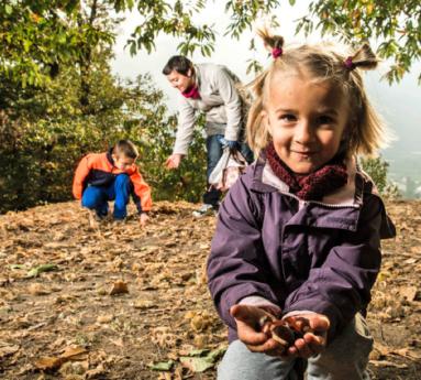 Sur le sentier didactique de la châtaigneraie, la récolte de châtaignes est libre et ouverte à tous.