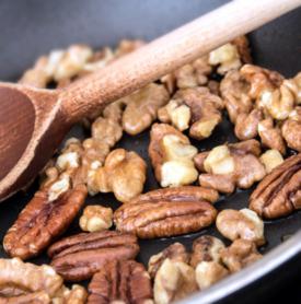 Nüsse entfalten ein wunderbares Aroma, wenn sie geröstet und gewürzt werden. Das geht ganz einfach zu Hause im Backofen.