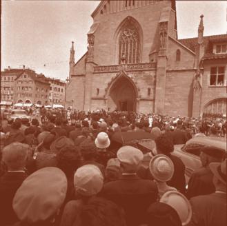 Zu Lebzeiten hat Migros-Gründer Gottlieb Duttweiler oft polarisiert. Er wurde geliebt, aber auch heftig angefeindet. Als er im Juni 1962 mit 73 Jahren stirbt, sind sich plötzlich alle einig: Die Schweiz hat einen grossen Mann verloren. Die Abdankung im Zürcher Fraumünster wird in drei weitere Kirchen übertragen, weil so viele Menschen an der Trauerfeier teilnehmen wollen.