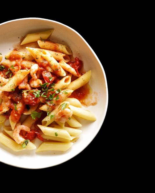 PENNE À LA SAUCE TOMATE AUX CREVETTES