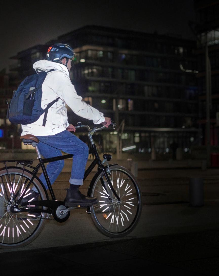 Casques ou gants fluos, réflecteurs aux poignets et chevilles, voire pneus à bandes réfléchissantes. Outre l’équipe ment de base conseillé par le BPA, ce dernier encourage à ne pas hésiter à enfiler des accessoires supplémentaires. Une lampe clignotante amovible peut ainsi venir compléter l’équipement du cycliste, comme des semelles réfléchissantes peuvent le faire pour les fans de footing. Sachez toutefois faire preuve de retenue: vous transformer en sapin de Noël n’aidera pas les autres usagers de la route à anticiper vos intentions et peut même détourner leur attention. Et en cas de pluie, pensez que si votre parapluie est trop grand, il peut masquer la panoplie que vous aurez enfilée. Privilégiez des modèles de faible envergure ou choisissez-en un équipé – on y revient toujours –d’éléments renvoyant la lumière.