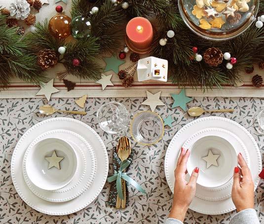 1 Tovaglia con rametti beige, 170 x 300 cm 29.95 2 Boccia di vetro trasparente*, disponibile in 3 colori, Ø 7 cm 3.95 l’una 3 Piatto piano bianco, Ø 27 × 2 cm 8.95 4 Stelle decorative in legno* disponibili in 3 colori, FSC 3.95 l’una 5 Ciotola bianco, Ø 14 x 7 cm 6.95 6 Alberelli decorativi in legno set da 36, colore verde-naturale, FSC 5.95 7 Coltello, forchetta, cucchiaio da tavola o cucchiaino da caffè color oro a partire da 4.50 8 Piatto da dessert bianco, Ø 20 x 1,8 cm 7.95 9 Casetta decorativa per interni LED a luce bianca calda, alimentazione a pile, altezza 13,5 cm o 17,5 cm a partire da 7.95 10 Candela cilindrica zigrinata disponibile in 3 colori, altezza 10 cm o 15 cm a partire da 5.95 11 Caraffa con decorazione albero di Natale o pinguino 1 l 14.95 l’una 12 Bicchiere con decorazione albero di Natale o pinguino 35 cl 7.95 l’uno 13 Alberelli di Natale set da 4 5.95 14 Portalumino a bicchiere disponibile in 3 colori, altezza 8 cm o 10 cm a partire da 3.95