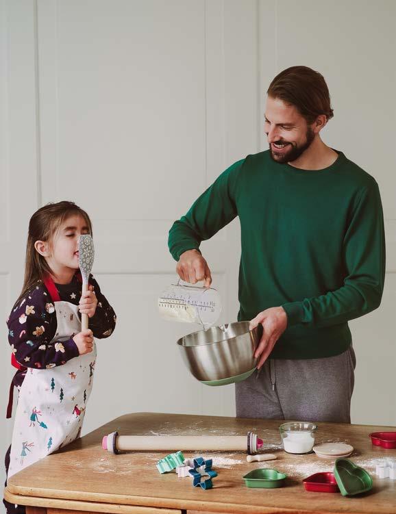 1 Set regalo fiocco di neve* spatola e 4 tagliabiscotti 9.95 2 Grembiule natalizio per bambini 9.95 3 Bicchiere graduato vetro1 l 9.95 4 Ciotola con base antiscivolo acciaio inox e silicone, 1 l 12.95 5 Mattarello regolabile in altezza faggio e silicone, FSC 19.95 6 Stampo minicuore antiaderenteset da 2, rosso o verde 6.95 il set 7 Vasetto Weck® con coperchio e paletta in faggio, 370 ml 7.95 8 Pullover da uomo in lana merino Migros Essentials verde, disponibile in diversi colori, S-XXL 59.95 l’uno