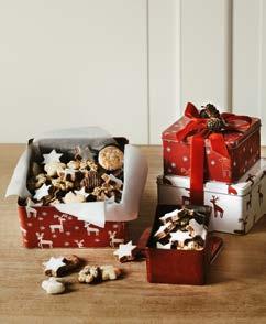 1 Glassa di zucchero per scrivere rossa Patissier 25 g 2.65 2 Stampo per omini di panpepato* silicone 9.95 3 Polvere Diamond Dust* decorazione commestibile, bianca 8.95 4 Tagliabiscotti set da 8 o 12 4.95 il set 5 Mattarello goffrato faggio, disponibile con diversi motivi, FSC 9.95 l’uno 6 Pasta per milanesini al burro Anna’s Best blocco, 500 g 4.70 7 Stelle alla cannella Grand-Mère 230 g 4.80 8 Stelline al burro Christmas Bakery 220 g 3.80 9 Scatole di Natale cervo set da 3 11.95 10 Scatola di Natale tinta unita disponibile in diversi colori e grandezze a partireda 4.95