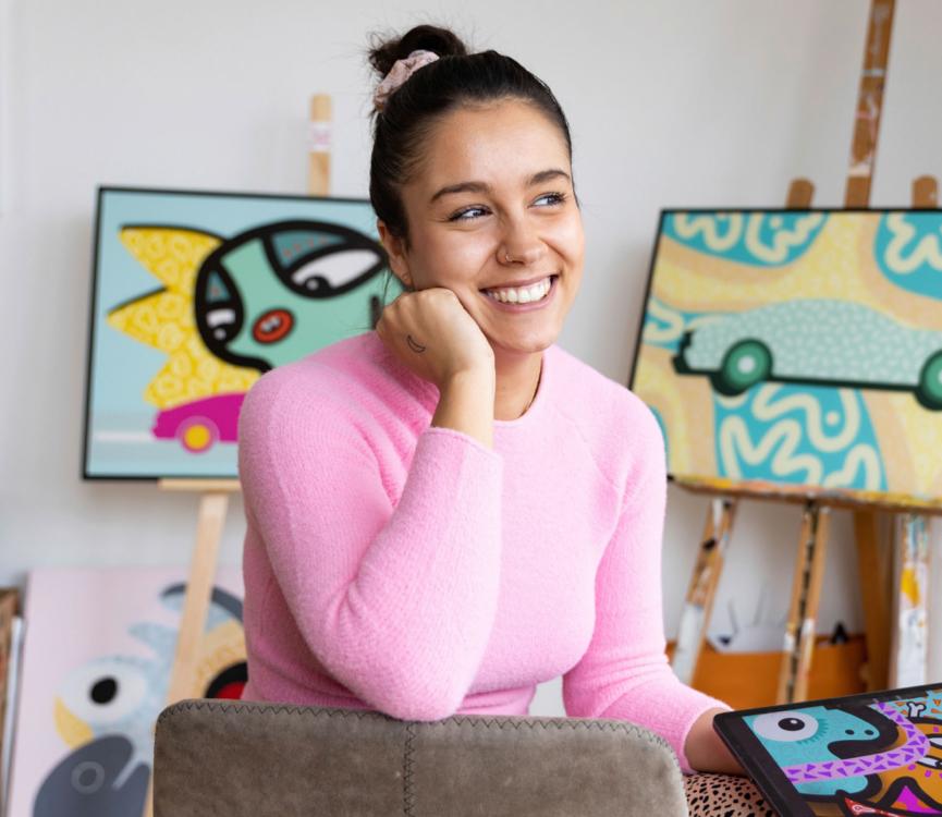 Ona Sadkowsky in ihrem Atelier: Die Bilder für Kaimug hat sie auf dem Tablet gestaltet.
