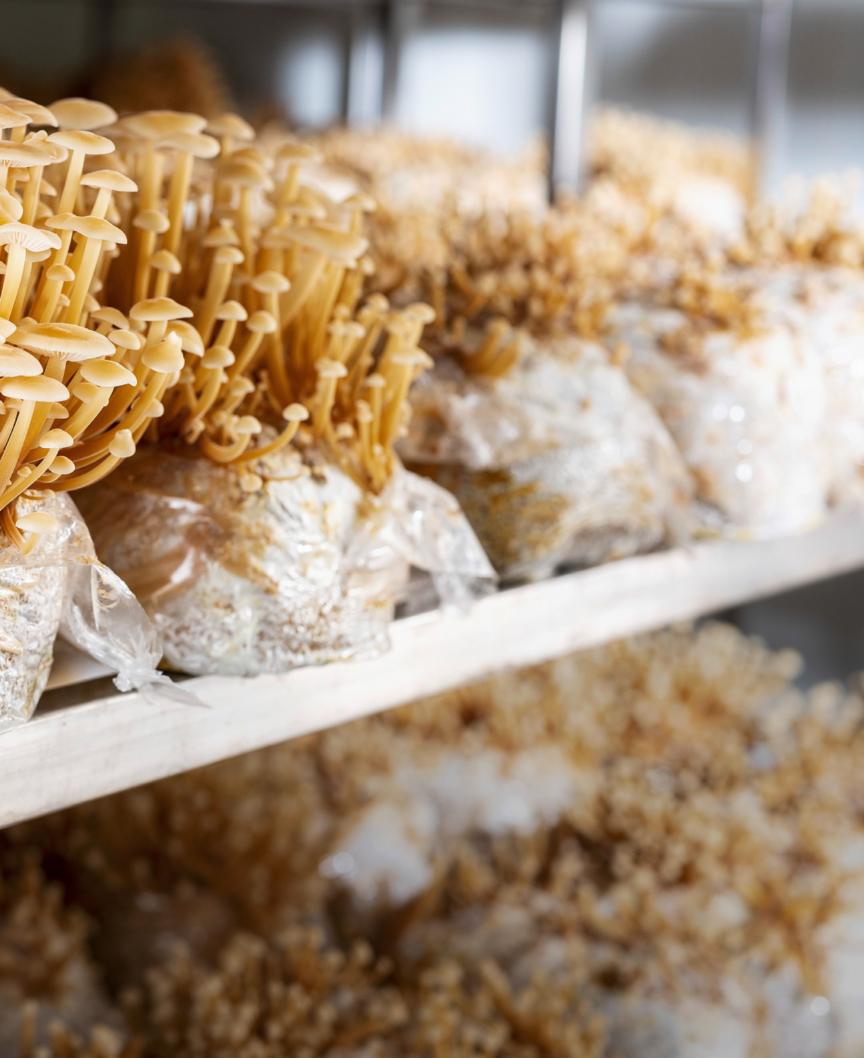 Migros-Moment in Kerns OW In dieser Zuchtanlage gedeihen Speisepilze auf einem Nährboden aus Schweizer Holz. Die Firma «Kernser Edelpilze GmbH» liefert die eiweissreiche Spezialität an die Migros-Genossenschaften Aare, Luzern und Zürich. Das Bild ist am 5. September entstanden.