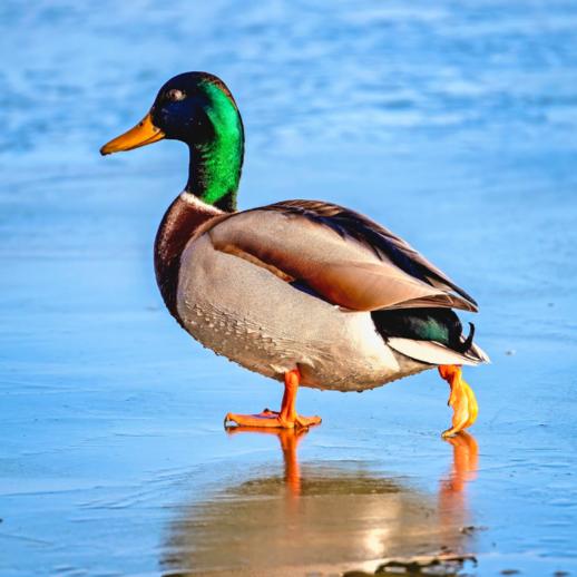Wer immer kalte Füsse hat, kann keine kalten Füsse bekommen. Nach dieser Weisheit verfahren Enten. Das ist wichtig für sie. Denn mit warmen Füssen würden Wasservögel die Eisschicht, auf der sie stehen, zuerst antauen – und dann darauf festfrieren. Durch Entenfüsse fliesst deshalb nur wenig Blut. Und sie werden auf knapp sechs Grad heruntergekühlt. So sind kalte Füsse für Enten der Normalzustand – und das Festfrieren kein Thema.