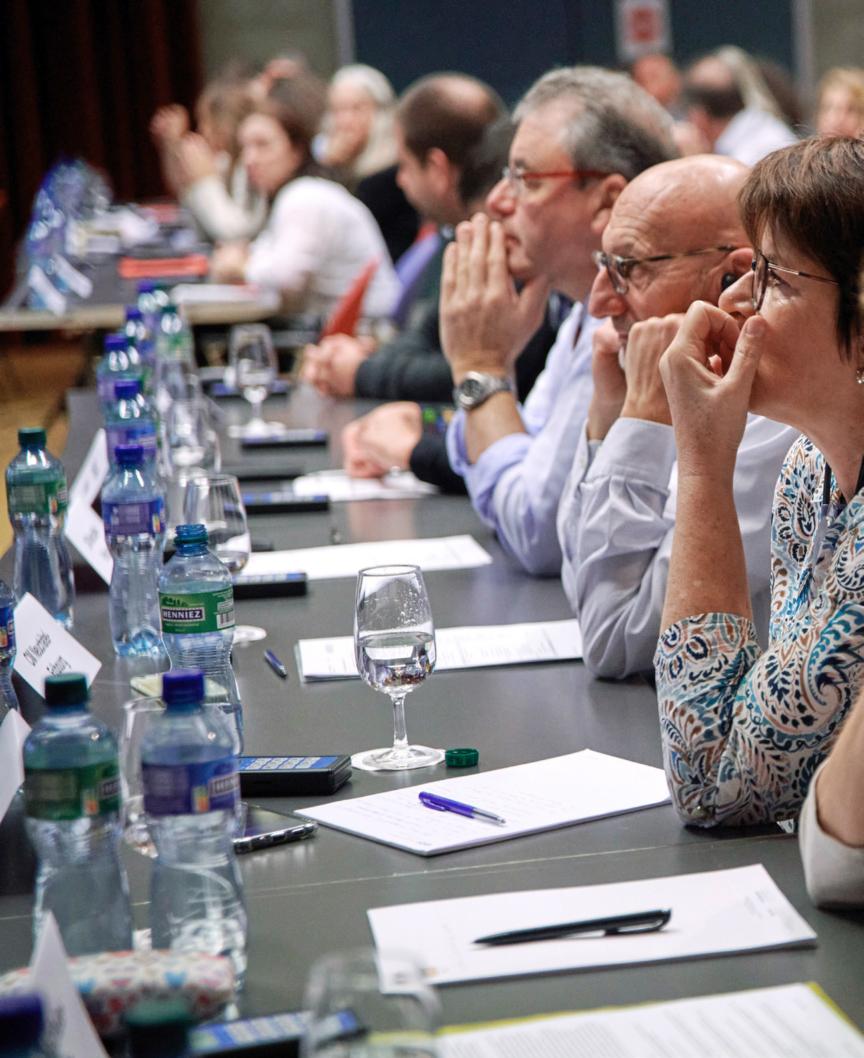 Migros-Moment in Martigny VS Einmal in ihrer vierjährigen Legislatur tagt die Migros-Delegiertenversammlung jeweils in einer regionalen Genossenschaft. 2022 war das Wallis dran, wo die 111 Mit glieder des höchsten Migros-Organs über statutarische Geschäfte berieten und abstimmten. Die Aufnahme ist am 12. November entstanden.