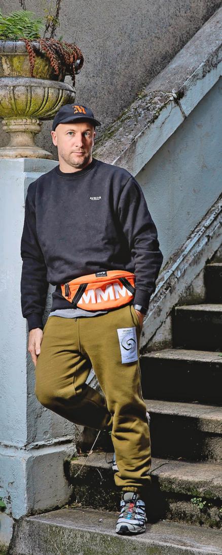 Texte: Patricia Brambilla Photos: Jeremy BiererSébastian Strappazzon, Jurassien d’origine qui a grandi à Morges, se souvient avec bonheur de ses années d’adolescence, entre boules de Berlin, thé froid et sauts en planche à rou lettes. Des heures sur le bitume, hiphop et culture de la street. Il termine un apprentissage de plâtrier-peintre, mais rêve de design, créer des vête ments pour les rappeurs et les footeux. À 19 ans, il lance sa marque et monte à Paris pour vendre ses fringues à même le coffre de sa voiture. Une audace qui paie, puisque le rappeur Orelsan le remarque. «J’ai pu l’habiller jusqu’à ce qu’on fasse ensemble notre propre marque Avnier. On est devenus amis», raconte le designer, 42 ans aujourd’hui.
