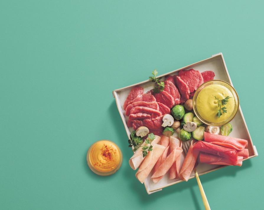 Commandez des plateaux de viande à fondue chinoise selon vos souhaits, en toute simplicité, sur theke.migros.ch/fr ou au comptoir boucherie.