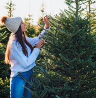2. Mach den Nadeltest! Streiche mit den Händen gegen die Wuchsrichtung über einen Ast. Fallen dabei Nadeln ab, lass besser die Finger von diesem (wohl älteren) Exemplar.