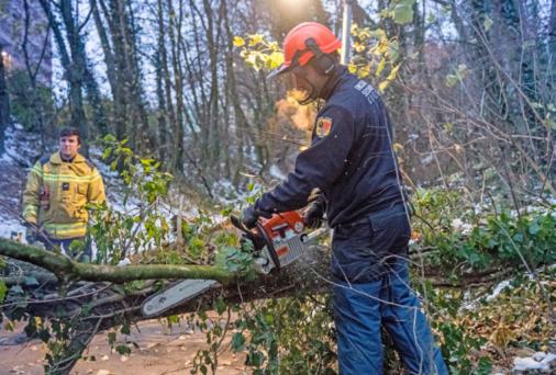 l’appel et on s’équipe en conséquence. Le tout dans un calme quasi absolu. Le téléphone d’un résident du quartier de Lancy concerne un arbre d’une dizaine de mètres tombé sur une piste cyclable. Sans faire de dégât. En moins de vingt-cinq minutes, déplacement sans feux bleus compris, le feuillu est débité et les lieux sécurisés. En cette période, les équipes sont rodées; trois jours plus tôt, la neige et le froid avaient provoqué une centaine de sorties de ce type.