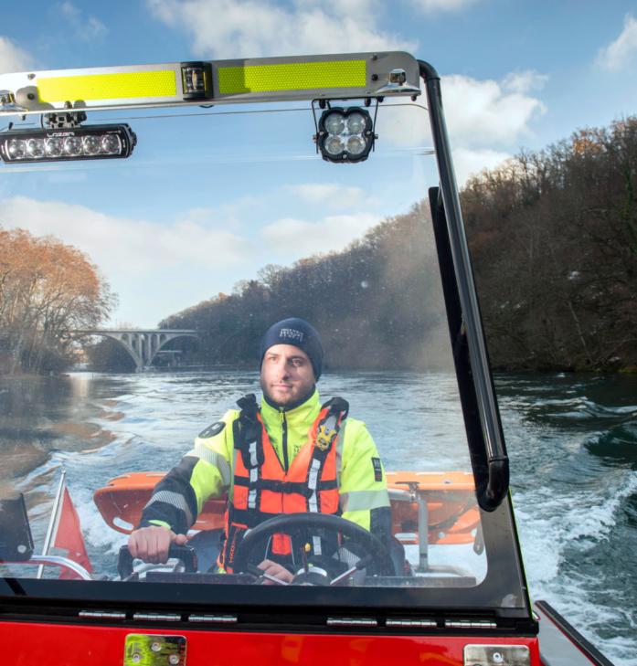 Une fois la tactique arrêtée, c’est la course contre la montre. Une demi-douzaine de véhicules et deux ambulances partent toutes sirènes hurlantes pour approcher le site par les deux rives du fleuve. En moins de dix minutes, les 8 kilomètres sont avalés – contre au bas mot vingtcinq minutes pour un conducteur civil. Plus bas, dans le lit du Rhône, le vrombissement des moteurs du nouveau bateau de sauvetage fait comprendre qu’il est déjà prêt à passer à l’action. Arrivés sur place, tout est sous contrôle. Une patrouille de police qui était en faction dans le secteur a déjà pu intervenir. Retour à la centrale.