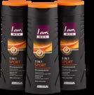 Gels douche I am Men et Denim p. ex. gel douche Sport 3 en 1 I am Men, 3 x 250 ml, 4.– au lieu de 5.40, (100 ml = 0.53) lot de 3 25%