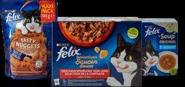 Tout l’assortiment d’aliments et de friandises pour chat, Felix p. ex. Sensations sauces dinde, canard, agneau, bœuf, 12 x 85 g, 6.36 au lieu de 7.95, (100 g = 0.62)
