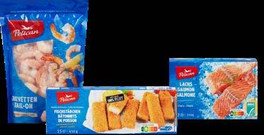 Gesamtes Fisch- und Meeresfrüchte-Sortiment (ohne Sélection und Alnatura), tiefgekühlt, z.B. Pelican Fischstäbchen paniert, MSC, 450 g, 2.40 statt 3.–, (100 g = 0.53)