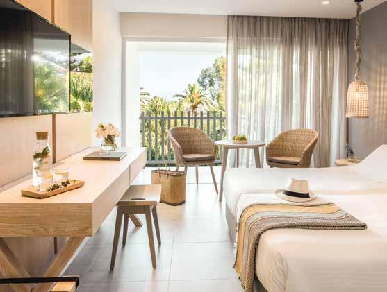 Logement Les chambres doubles Comfort ont bain ou douche, WC, sèche-cheveux, téléphone, TV, Internet sans fil gratuit, bouilloire, minifrigo, coffre-fort, climatisation, balcon ou terrasse vue parc. Vue mer ou en première rangée de plage sur demande. Max. 2 adultes et 1 enfant ou 3 adultes.