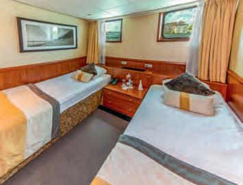 • Komfortkabinen, 12 m², mit Oberfenstern (aus Sicherheitsgründen nicht zu öffnen), zwei Einzelbetten.