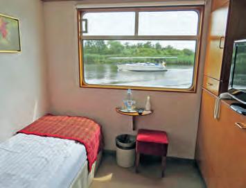 41 elegante, behagliche Kabinen und Suiten mit Flussblick, Dusche/WC, regulierbare Klimaanlage, Sat-TV, Safe, Haustelefon, Föhn.