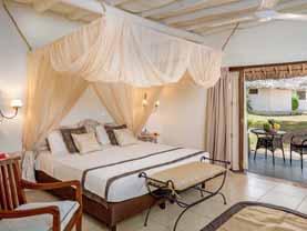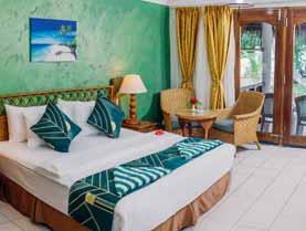Logement Les bungalows ont douche à effet pluie, WC, sèchecheveux, téléphone, TV, wifi gratuit, bouilloire, minifrigo, coffrefort et climatisation. Les bungalows avec vue sur le jardin et la terrasse (23 m²) ont hamac sur la terrasse et peuvent accueillir 2 adultes max. Les suites Bungalow avec 1 chambre, vue jardin et terrasse (30 m²) ont salon séparé en sus et peuvent accueillir jusqu’à 3 adultes ou 2 adultes et 2 enfants. Sur deux niveaux, les bungalows Duplex avec 2 chambres, vue sur le jardin et terrasse (57 m²) ont salon séparé et chaises longues sur la terrasse. Min. 4 adultes, max. 4 adultes et 2 enfants.