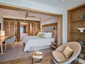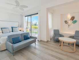 Premium (72 m²) sont identiques, mais la chambre est séparée du salon. Les suites Prestige (90 m2) peuvent accueillir 4 personnes (2 chambres, 2 salles de bain et 1 salon) et ont terrasse. Bungalows et villas sur demande.