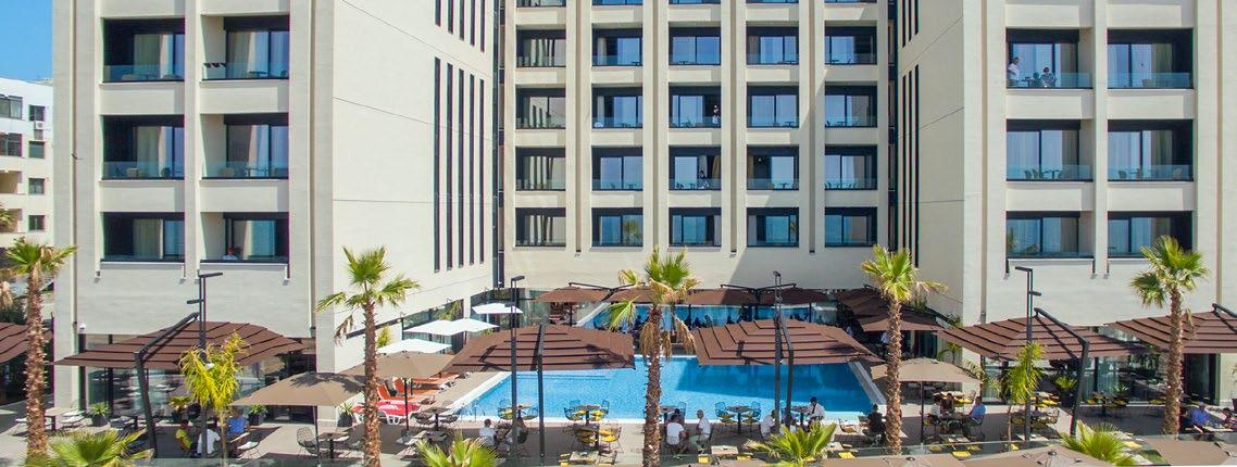 150 chambres. Hall de réception, Internet sans fil gratuit dans tout l’établissement. Restaurant-buffet principal (ouverture pendant l’été). Menu à la carte également proposé au restaurant-buffet (contre paiement). Bar à cocktails. Piscine extérieure, terrasse et bar (selon saison). Chaises longues, parasols et draps de bain gratuits à la piscine, payants à la plage. Parking gratuit.