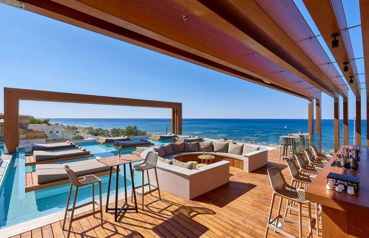 PREMIÈRE CLASSE À L’AMBIANCE TYPIQUEMENT GRECQUE. FAITES LE PLEIN D’ÉNERGIE ET DÉTENDEZ-VOUS AU BORD DE LA GRANDE PISCINE AVEC VUE SUR LA MER.