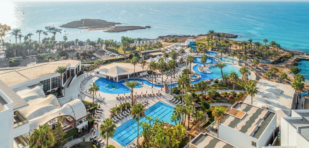 348 chambres. Hall de réception avec coin Internet payant, Internet sans fil gratuit. Restaurant-buffet principal, restaurant à la carte, bar à sushi, bar à la plage. Parc avec 5 piscines, bain-rivière, terrasses et bar à la piscine (cocktails et en-cas). Chaises longues, parasols et draps de bain gratuits aux piscines et à la plage privée, payants à la plage de la baie de Nissi.