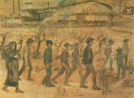 had geen contact met de clientèle. Hij hield zich meer bezig met het verkennen van de stad en werd uiteindelijk ontslagen. Hij keerde terug naar zijn ouderlijk huis en wilde predikant worden als zijn vader. Maar op de Vlaamse school voor evangelisten werd hij niet aangenomen. Vincent trok naar het arbeidersdorp Pâturage in de Belgische mijnstreek Borinage. Hij preekte voor de mijnwerkers en werd ziekenverzorger. Uit compassie met het leven van de behoeftige arbeiders, ontzegde hij zich voldoende voedsel en sliep zelfs in hun