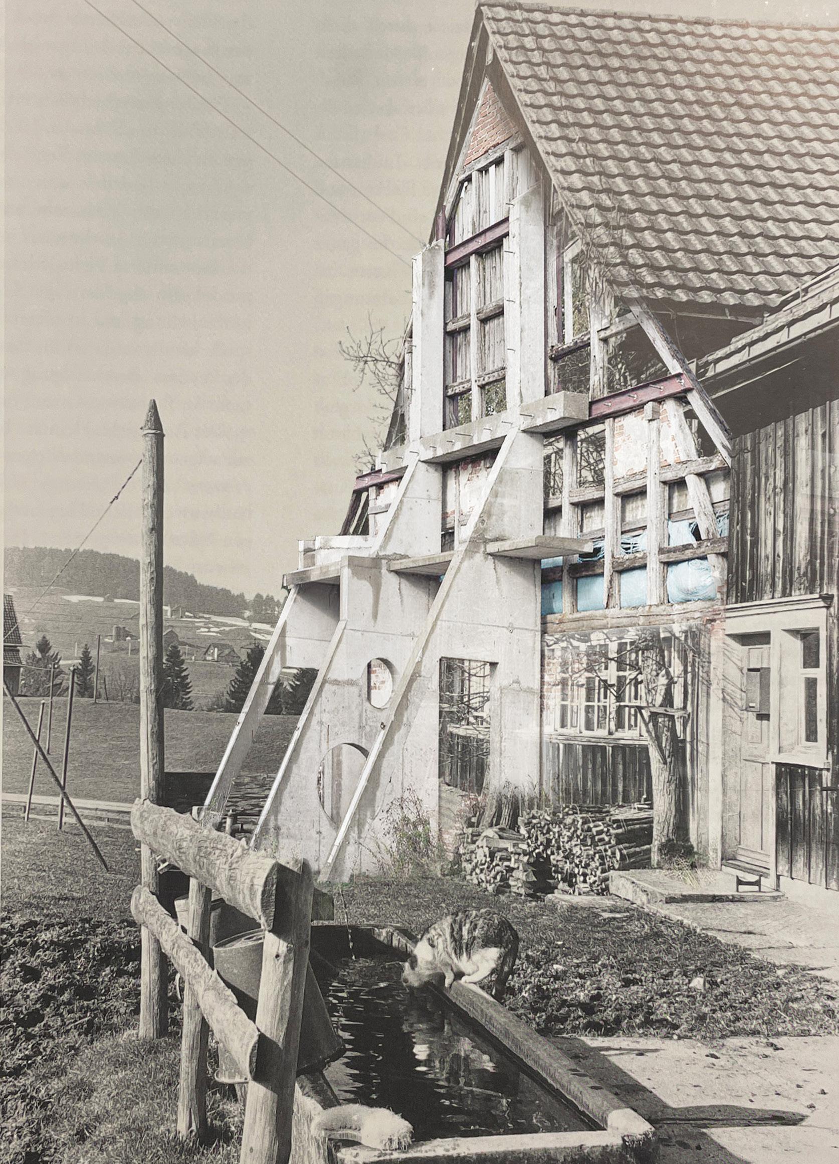 praktische Auseinandersetzung anhand eines architektonischen Projektes ein möglicher neuer Weg aufgezeigt werden, wie eine Transformation der geschützten, historischen Bausubstanz zu einer Werterhaltung führen kann. Die vorausgehende Erzählung ist die Ge schichte des Appenzellerhauses und die ihm innewohnende Charaktereigenschaft des Wieder verwendens und Weiterbauens. Anhand von drei historischen und gegenwärtigen Beispielen werden unterschiedliche Transformationen analysiert. Parallel zur historischen Auseinandersetzung und der Analyse des Bestandes wurde mithilfe von Collagen das Vorhandene verändert und neu interpretiert, um ständig neue Fragen aufzuwerfen.