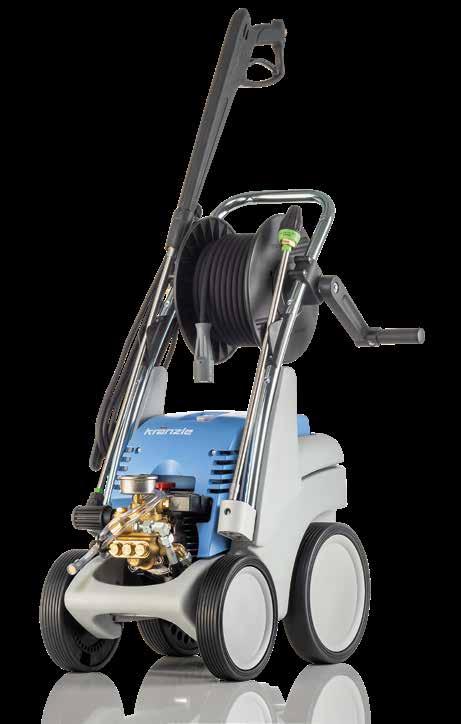 De Kränzle NoM-versies (geen-markering) zijn bijzonder geschikt voor voor gebruik in hygiëne- en sanitaire ruimtes. Wit massief rubberen banden en grijze hogedrukslangen laten geen sporen achter op vloeren en wanden, zoals vereist in deze sectoren.