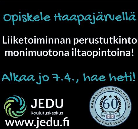sikön pihapiirissä ja tiloissa. Joulun avaus on Jedun väelle jo perinteinen tapahtuma, johon osallistutaan ja jonka suunnittelukin on nykyisin oppilaitoksen vastuulla. Uutena verkostoyhteistyön muotona on meneillään messujen suunnittelu ja toteuttaminen yhteistyössä kaupungin ja yrittäjäyhdistyksen kanssa. Klassiset Laaksojen messut kokevat siis paluun uudenmuotoisena tapahtumana ensi vuoden puolella. – On erittäin tärkeää, että haapajärvisillä ja naapurikuntien nuorilla on mahdollisuus yläasteen jälkeen opiskella koti- tai naapuripaikkakunnalla toisen asteen ammatillisia opintoja. Monille kuusitoistavuotiaille kotoa käsin opiskelu on paras vaihtoehto. Mikäli ei voi opiskella kotipaikkakunnalla asuen, niin opiskelupaikka löytyy useimmiten muualta kuin omalta alueelta suurempien kaupunkien oppilaitoksista. Siksi olemmekin huolissamme alueemme opetuksen keskittämisestä ja toivommekin edunvalvojina toimivilta päättäjiltä näkemyksellistä toimintaa, toteavat koulutusjohtaja Timo Seppälä ja lehtori Virpi Marttila.