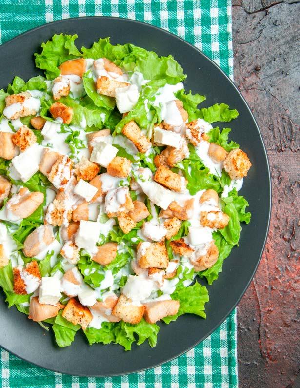 Lo puedes acompañar con: 2 cdtas. de aderezo césar + 1/2 tza de crotones horneados (pan horneado) o Aceitunas.