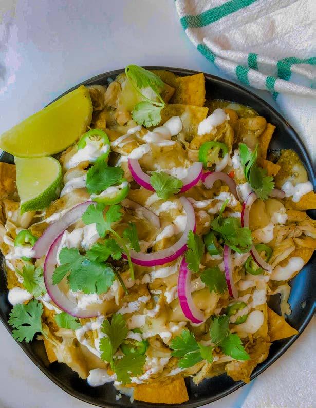 2. Pasa a un sartén y agrega tomatitos, monta sobre tostadas horneadas + queso asado + aguacate y salsa verde unas piscas de cilantro y jocoque en las tortillas, le puedes agregar elote y pollo.