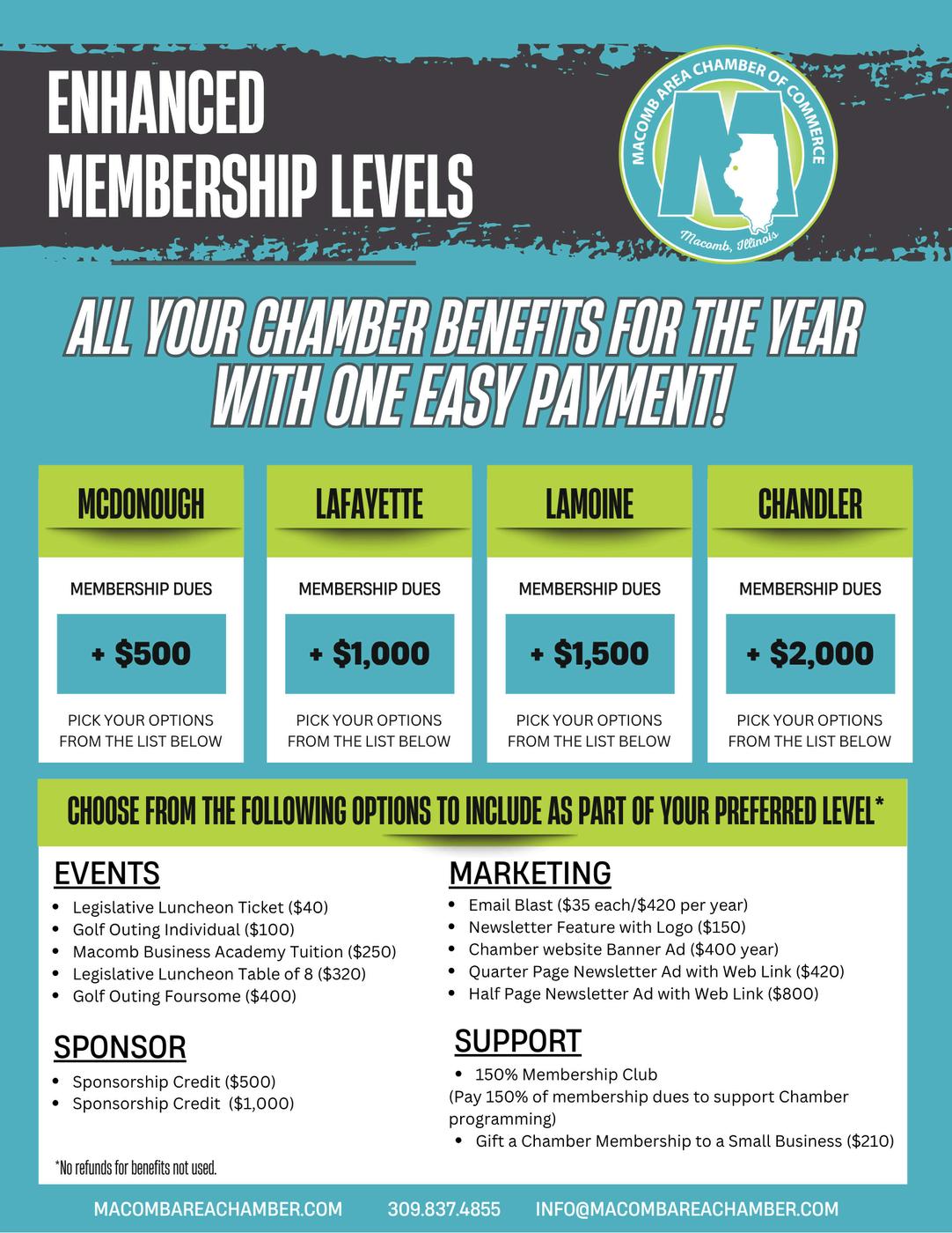 The 150% Club is a voluntary membership enhancement to provide additional support to the Macomb Area Chamber of Commerce and it’s mission.