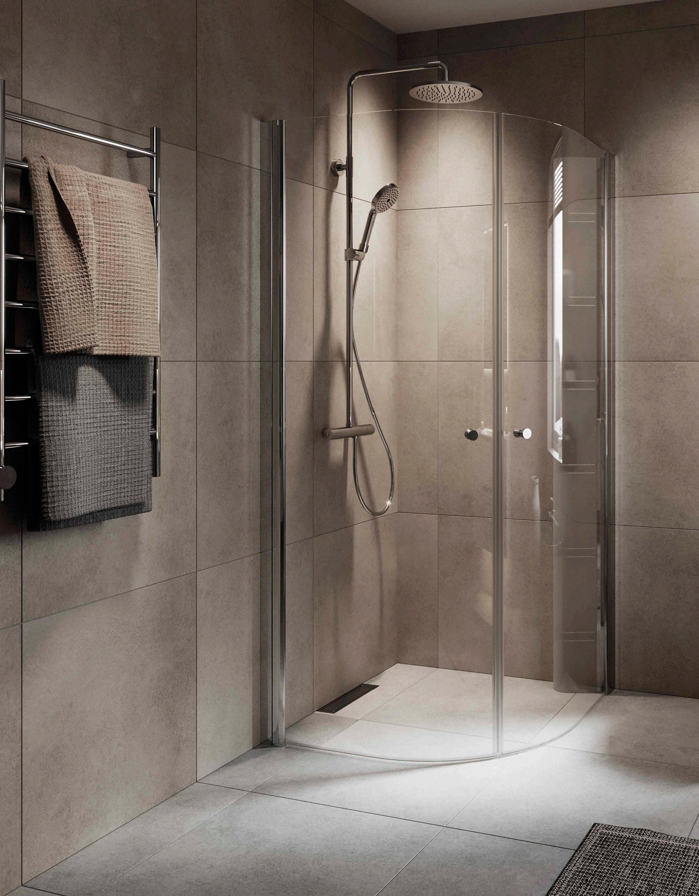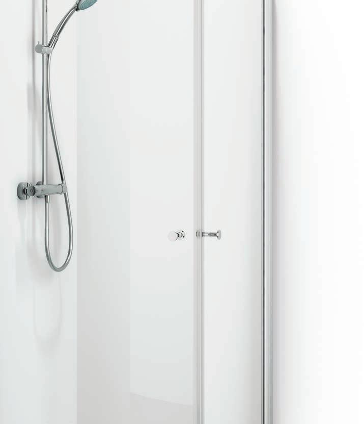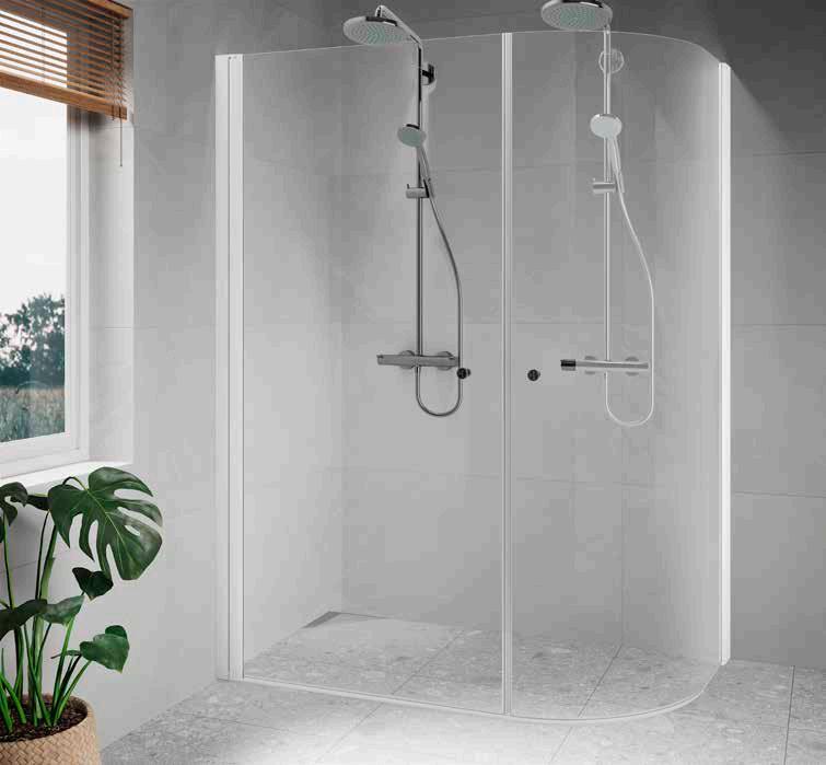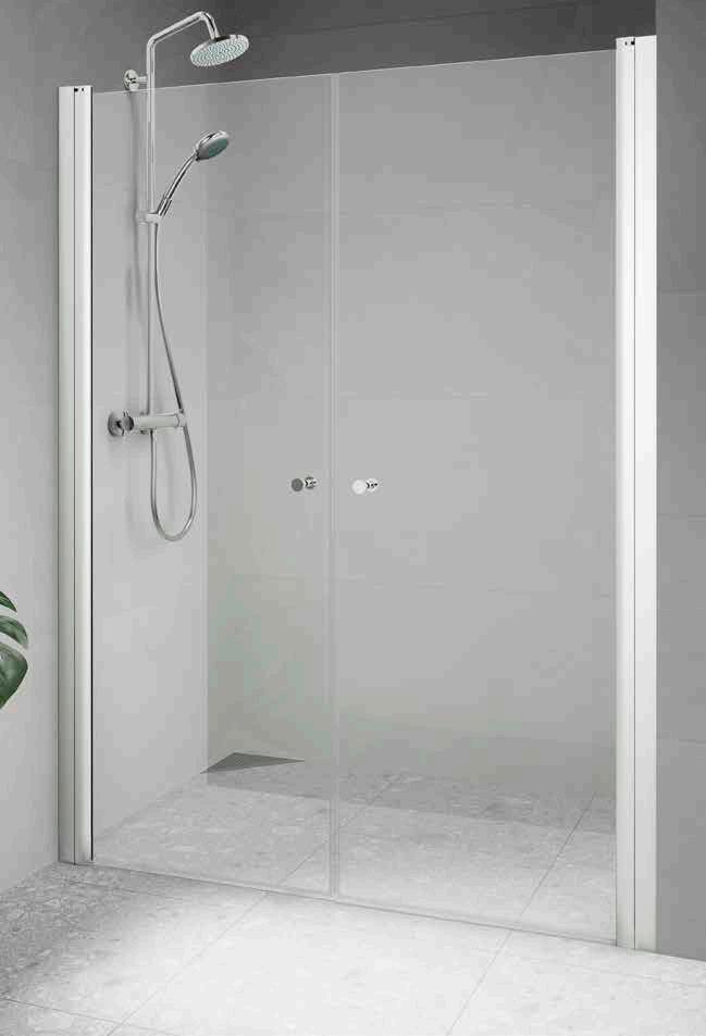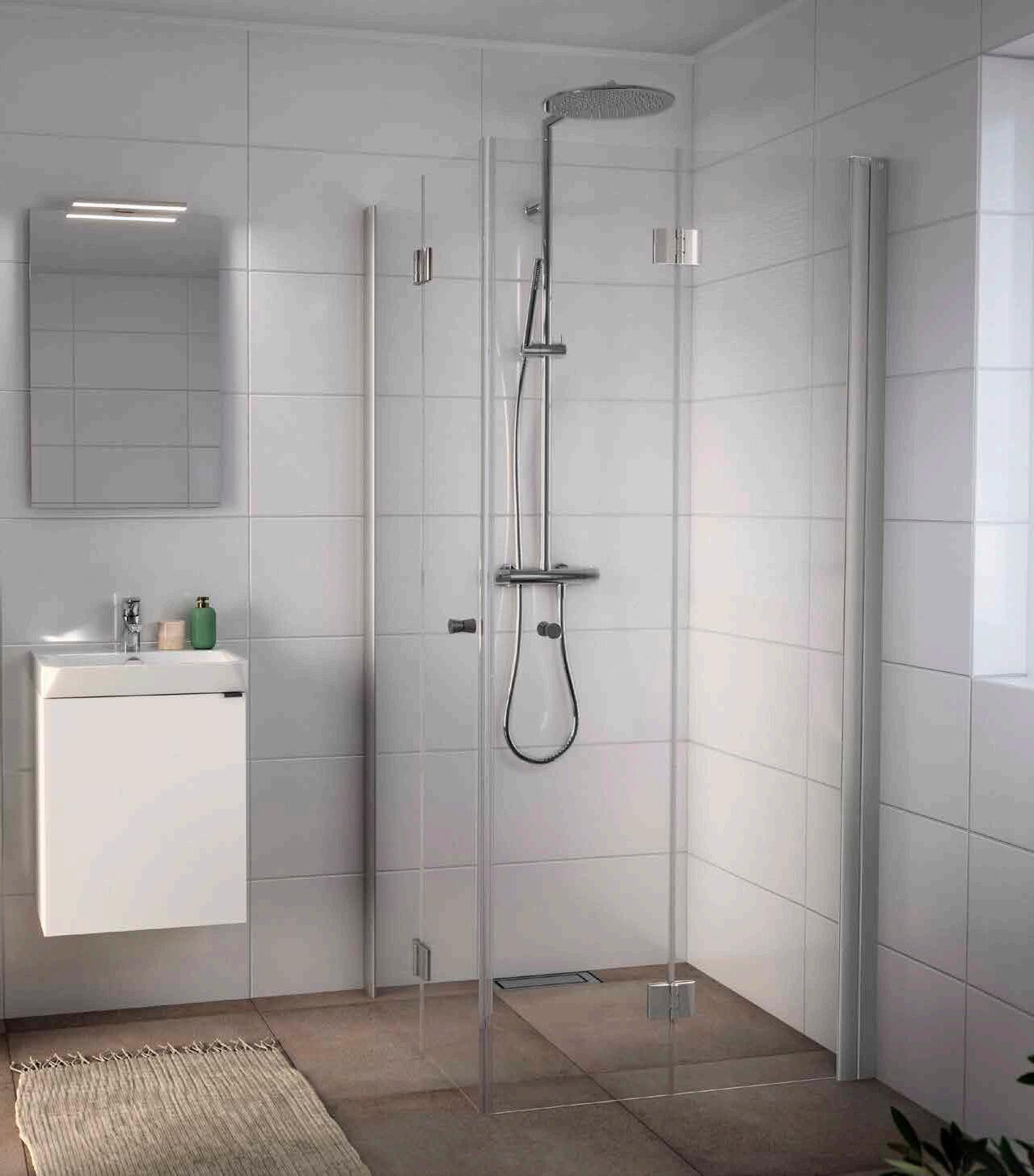 • Har du ett litet badrum med en toalett och ett handfat precis vid duschen, välj en vikmodell där dörren går att vika på mitten.
