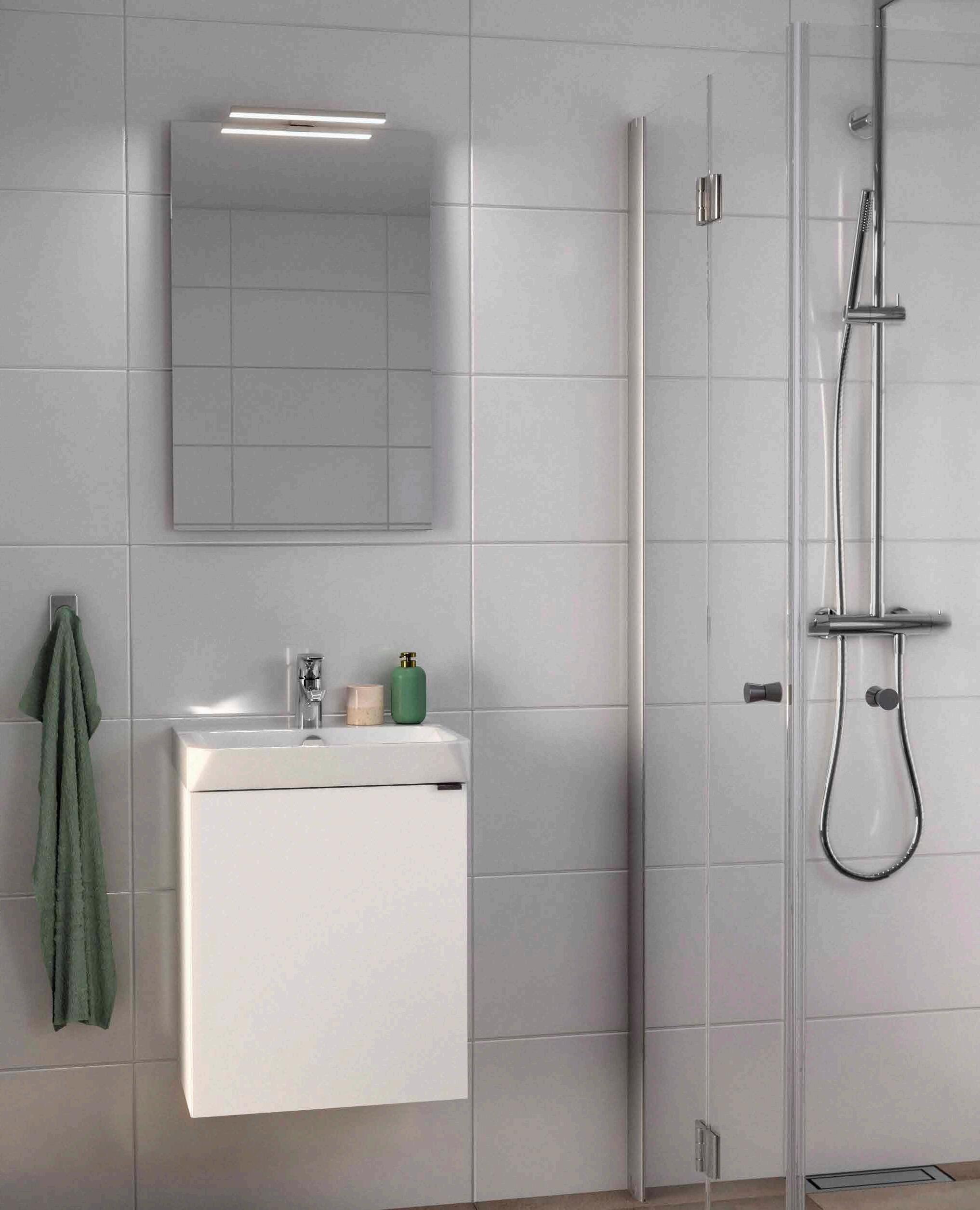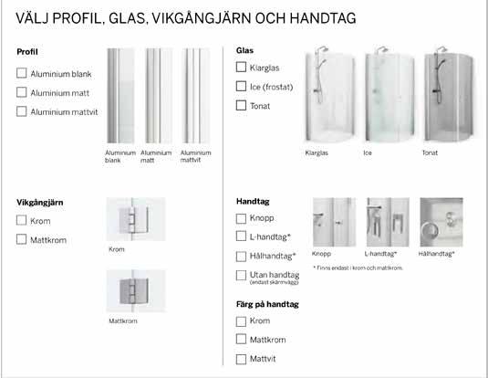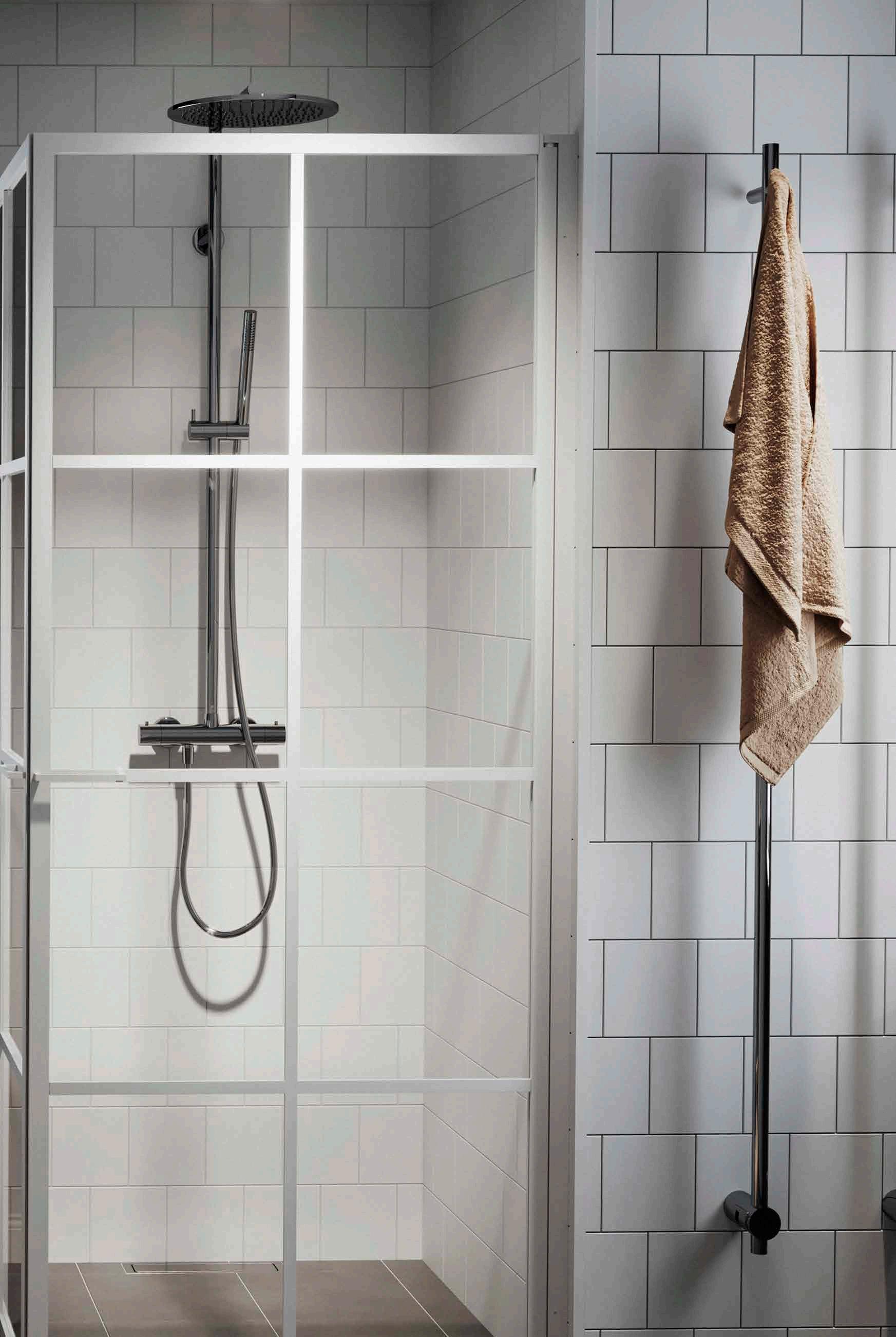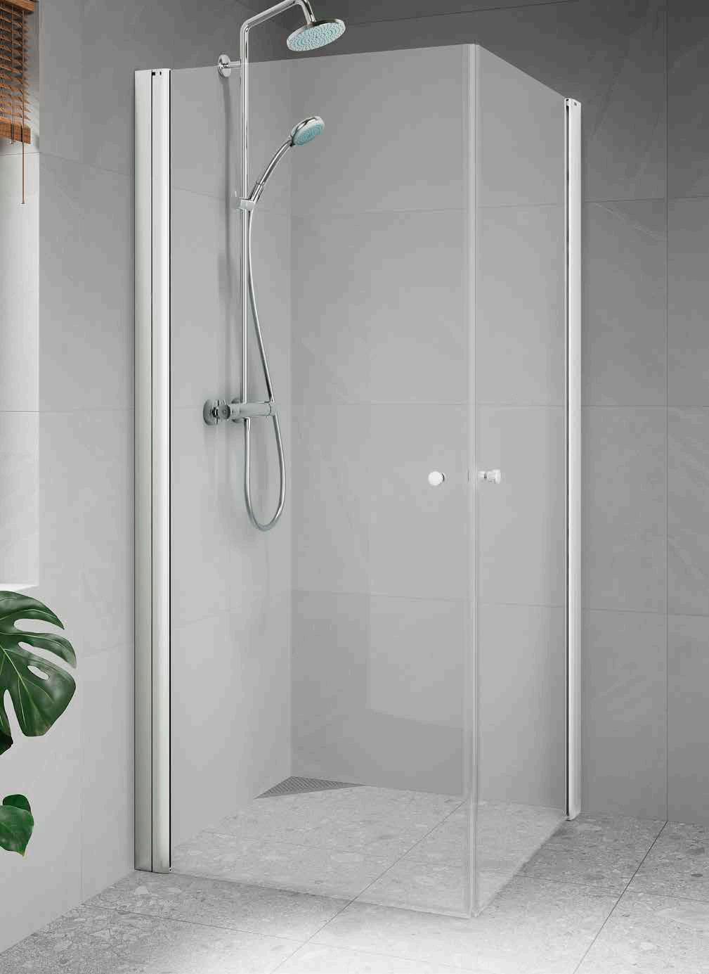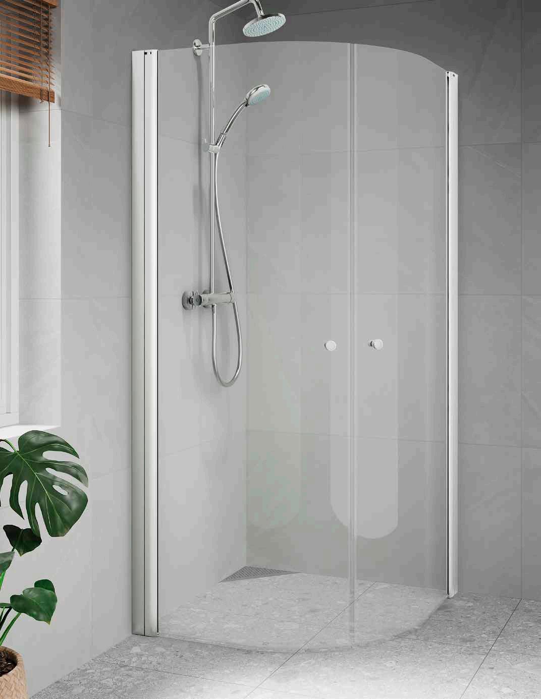 • Har du ett litet badrum med en toalett och ett handfat precis vid duschen, välj en vikmodell där dörren går att vika på mitten.