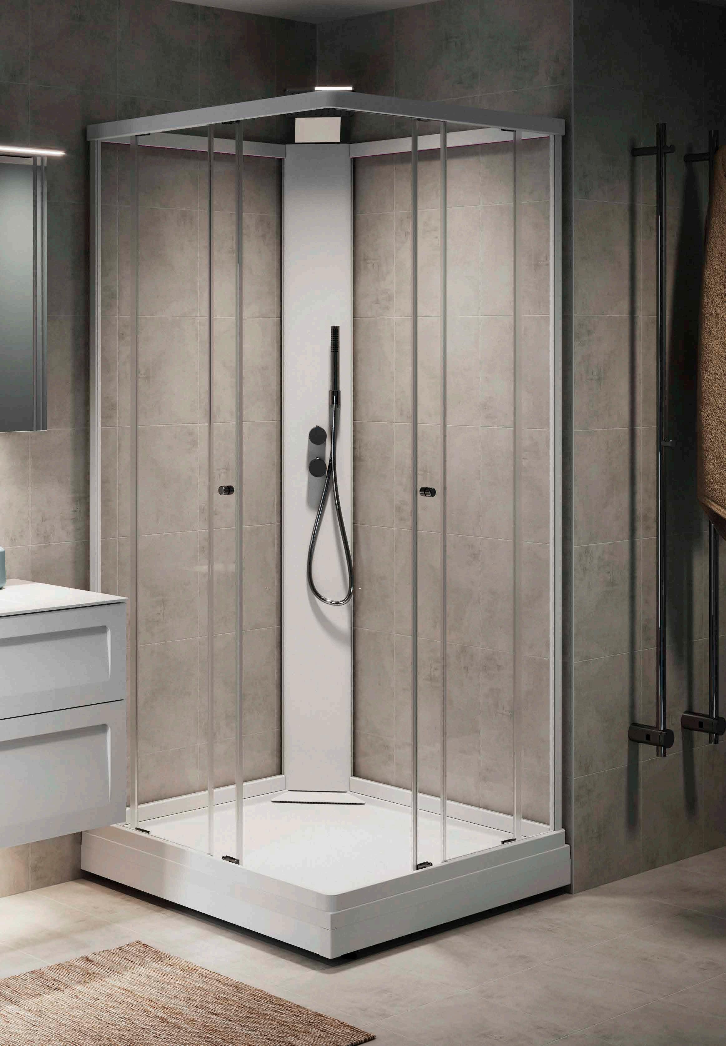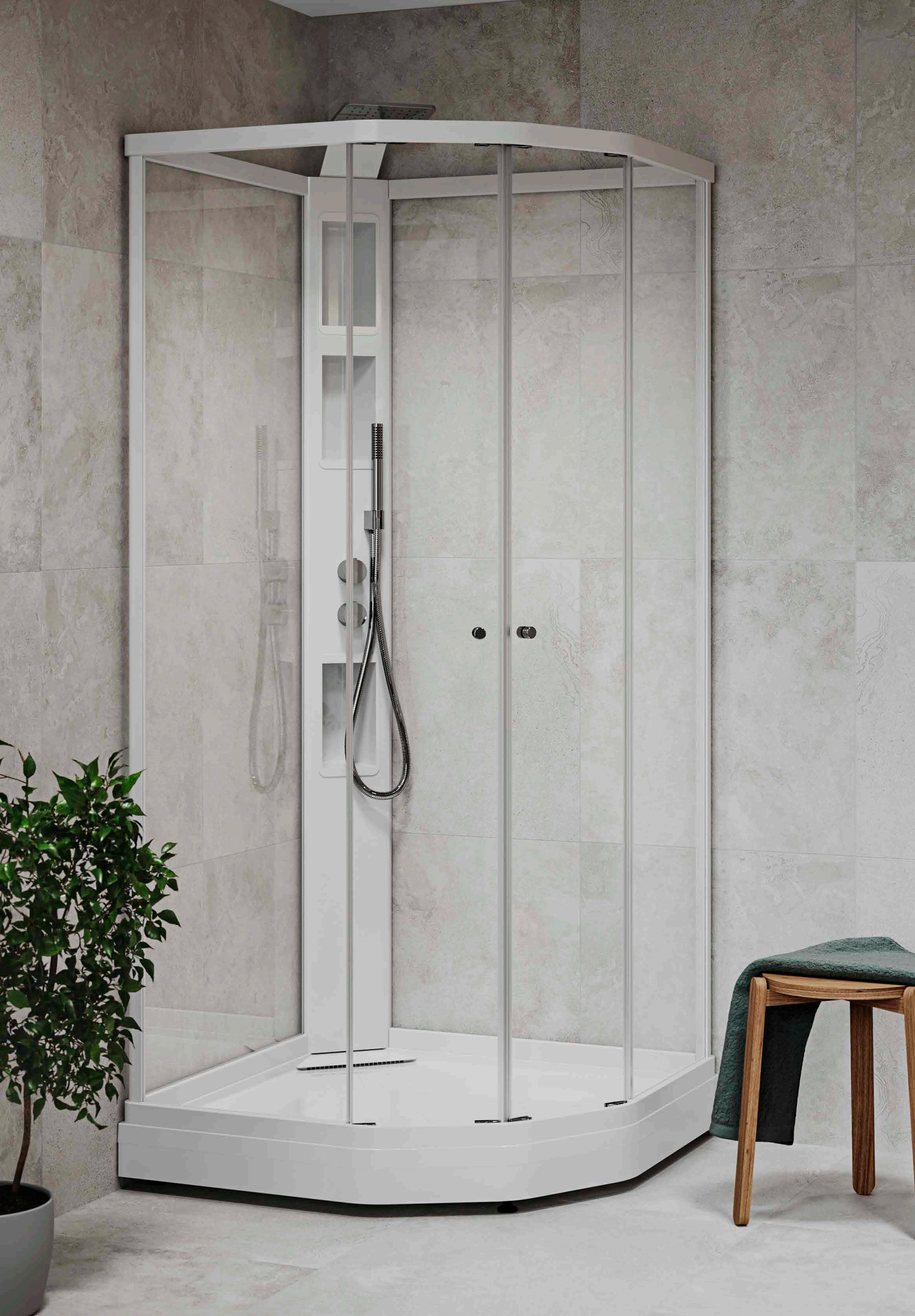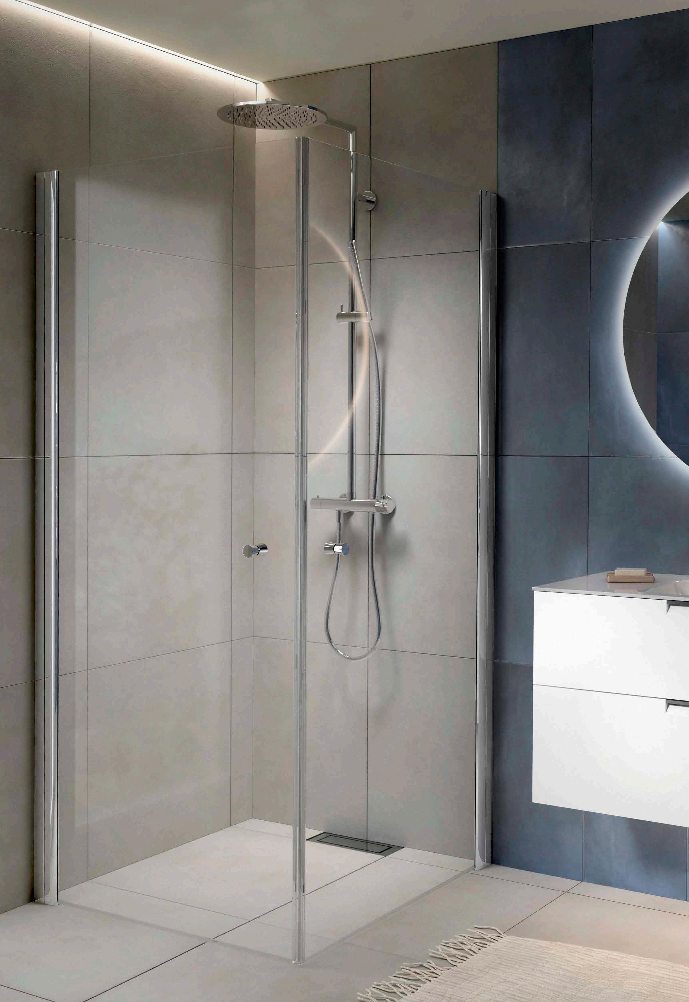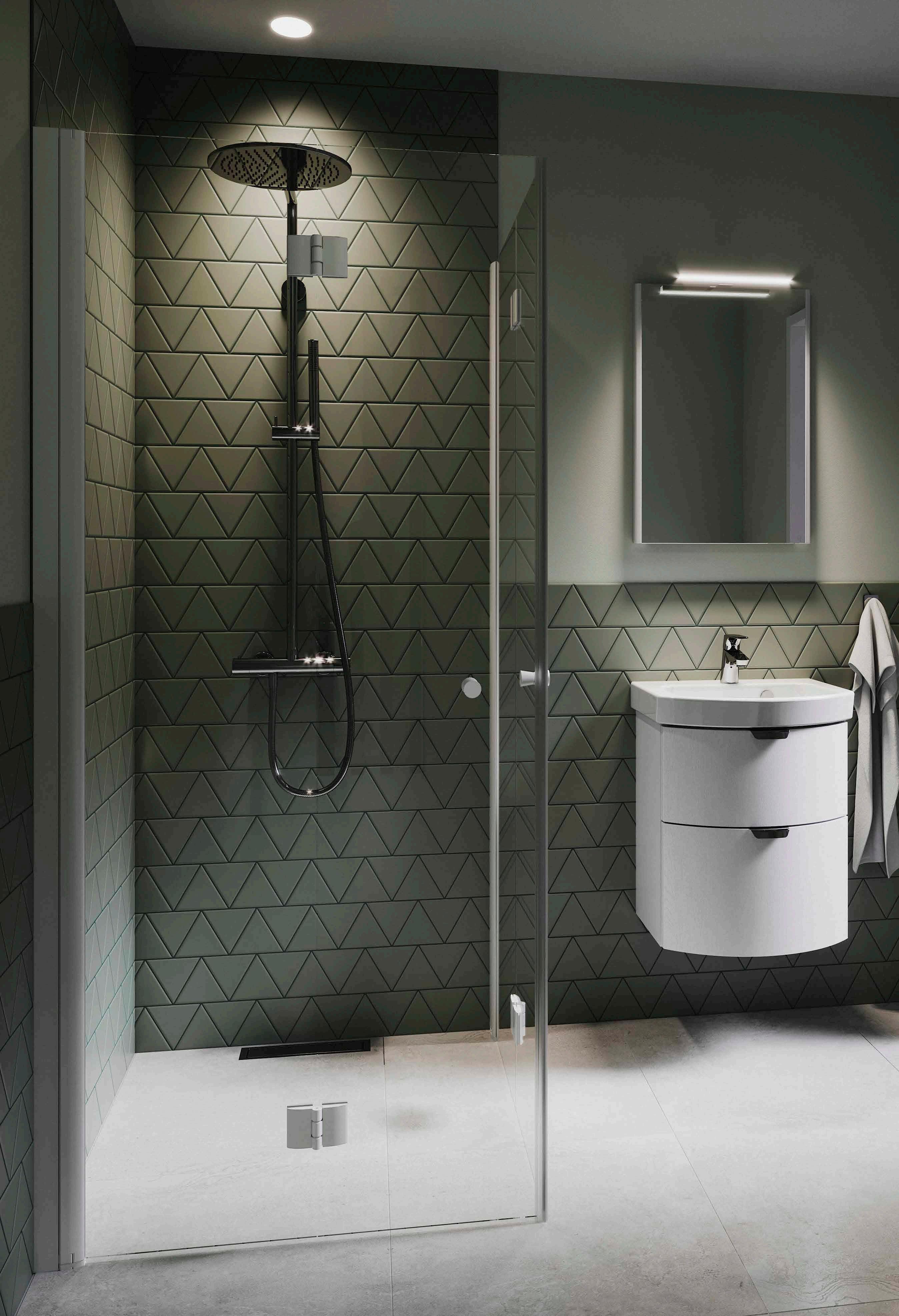 • Har du ett litet badrum med en toalett och ett handfat precis vid duschen, välj en vikmodell där dörren går att vika på mitten.
