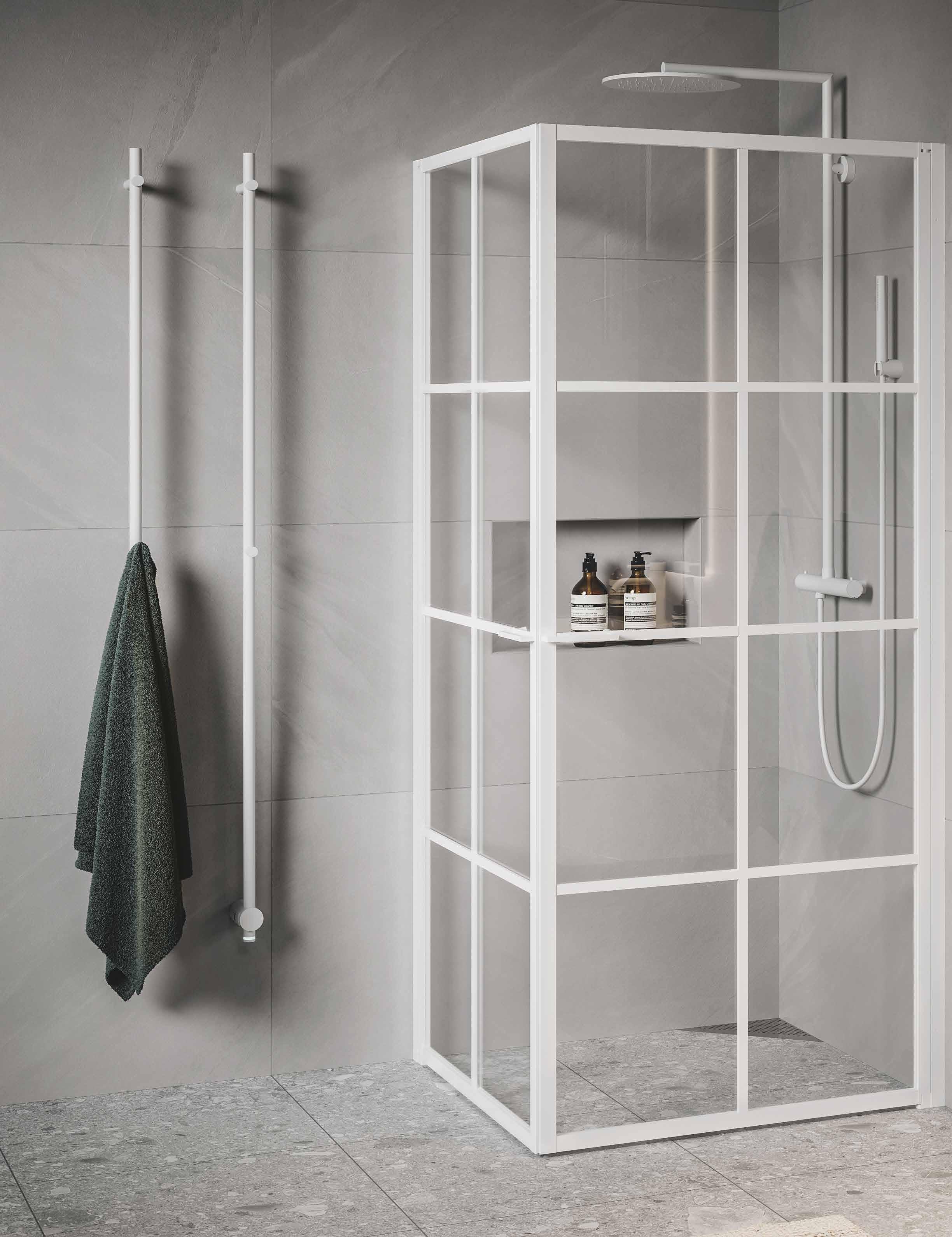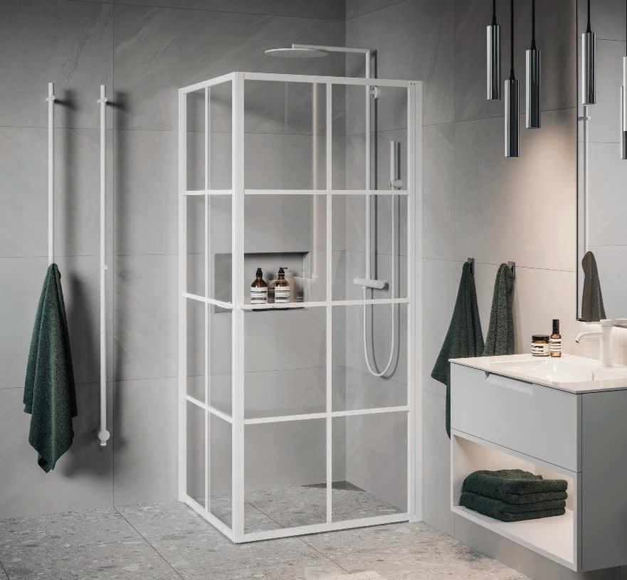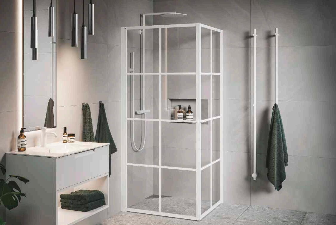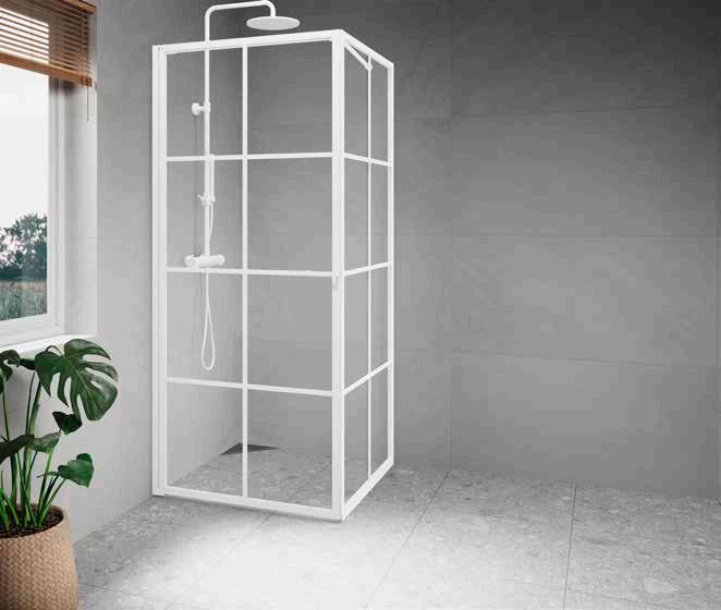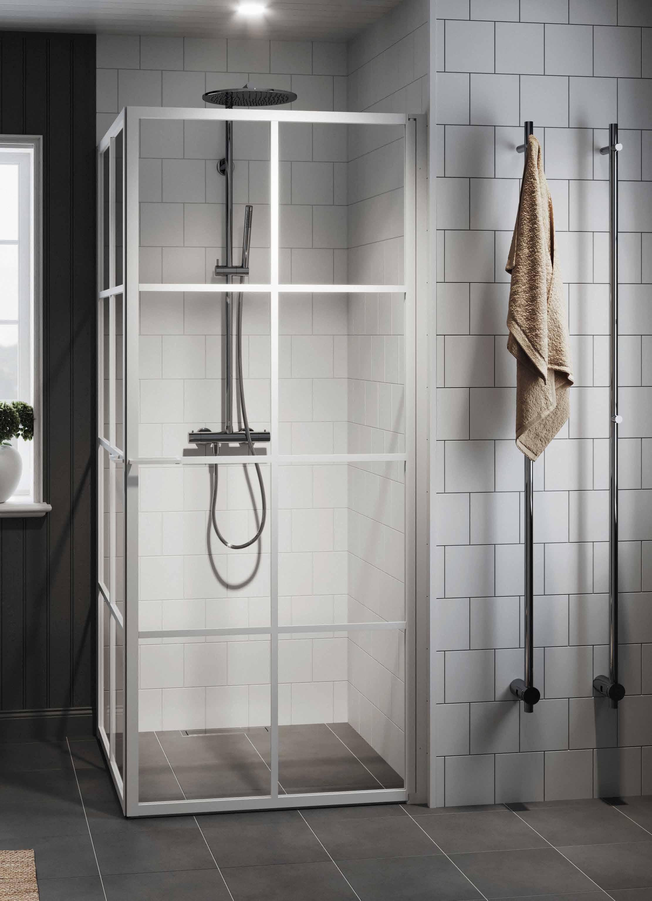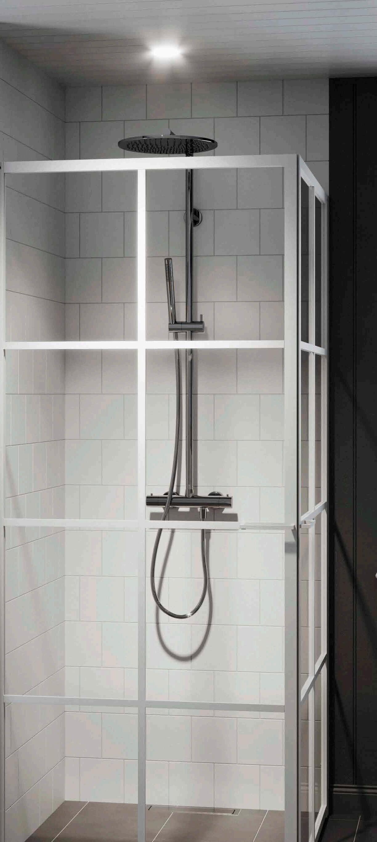 En dusch för den trendmedvetna som uppskattar en modern och industriell design med spännande och nyskapande detaljer. Välj mellan dramatisk mattsvart eller sobert vitt. En vit dusch fungerar perfekt i de romantiska eller klassiska badrummen där huset har spröjsade fönster.