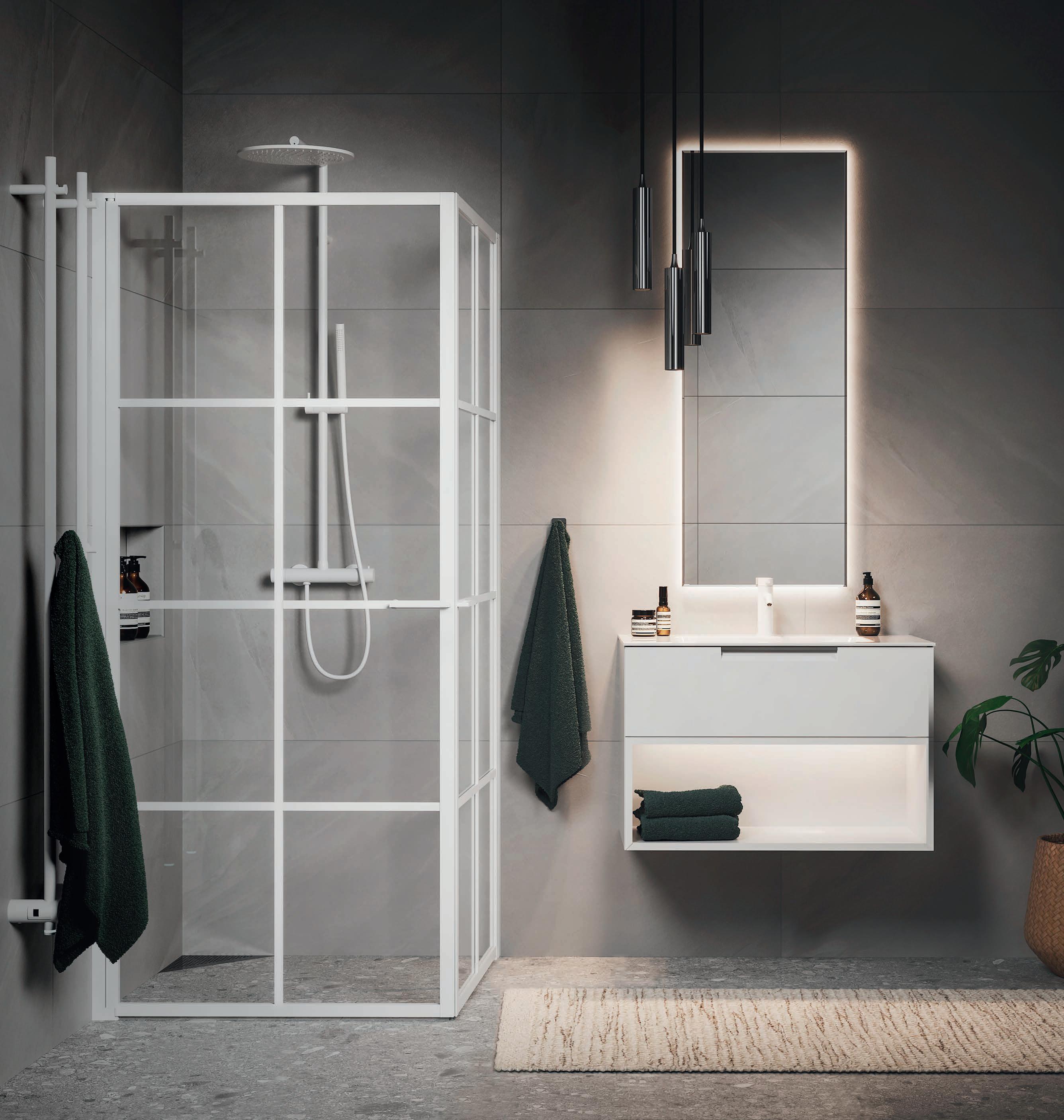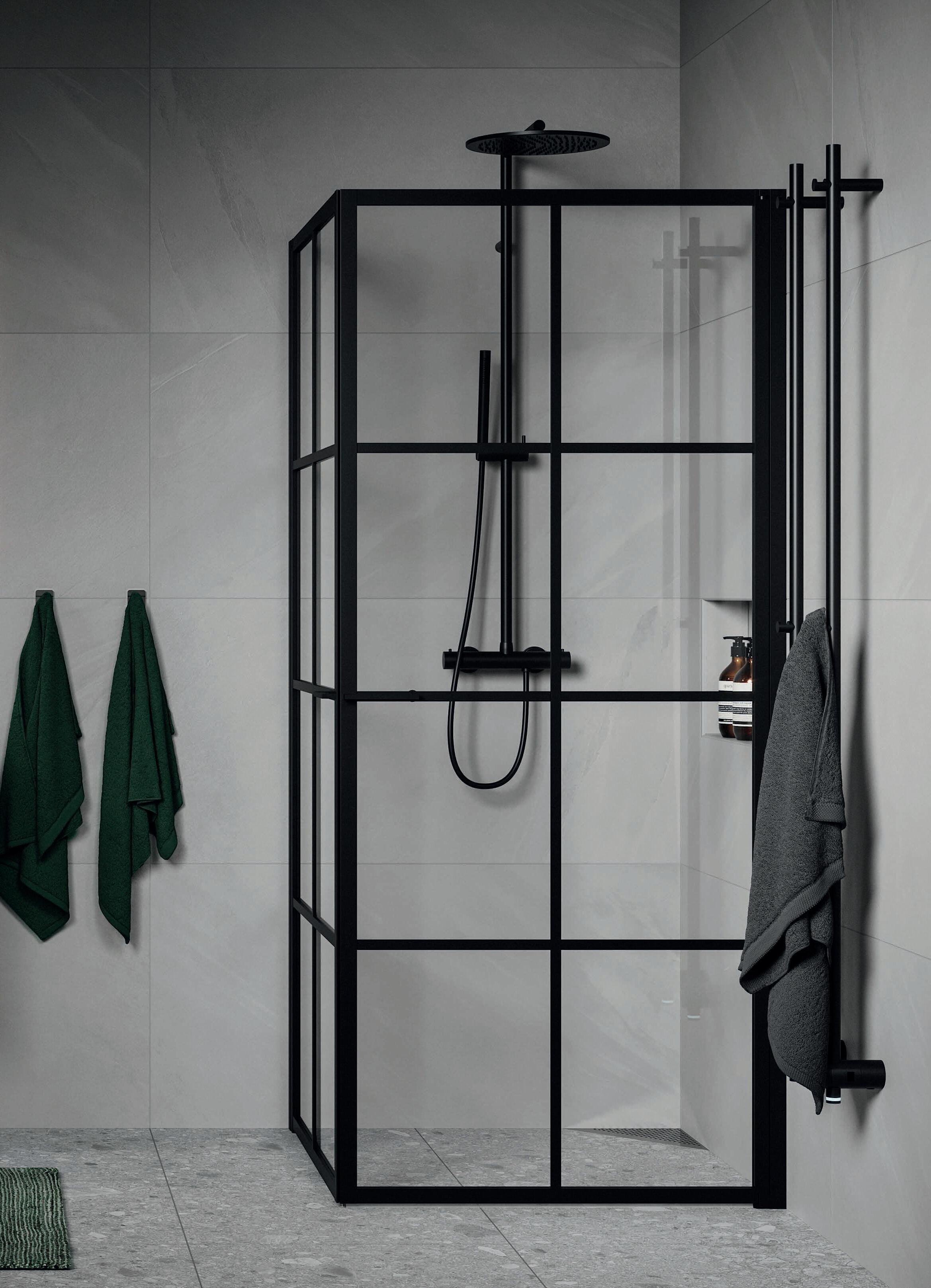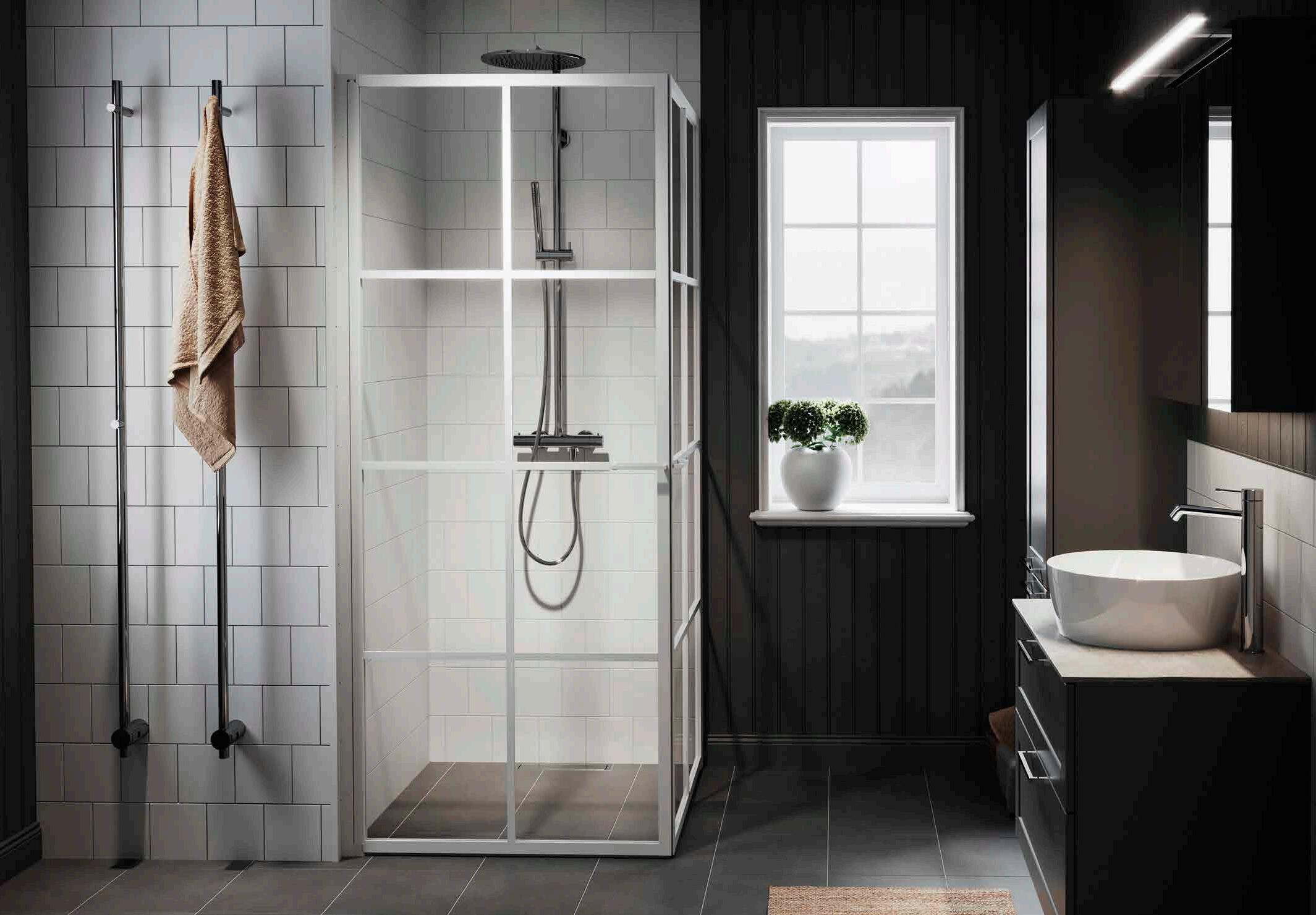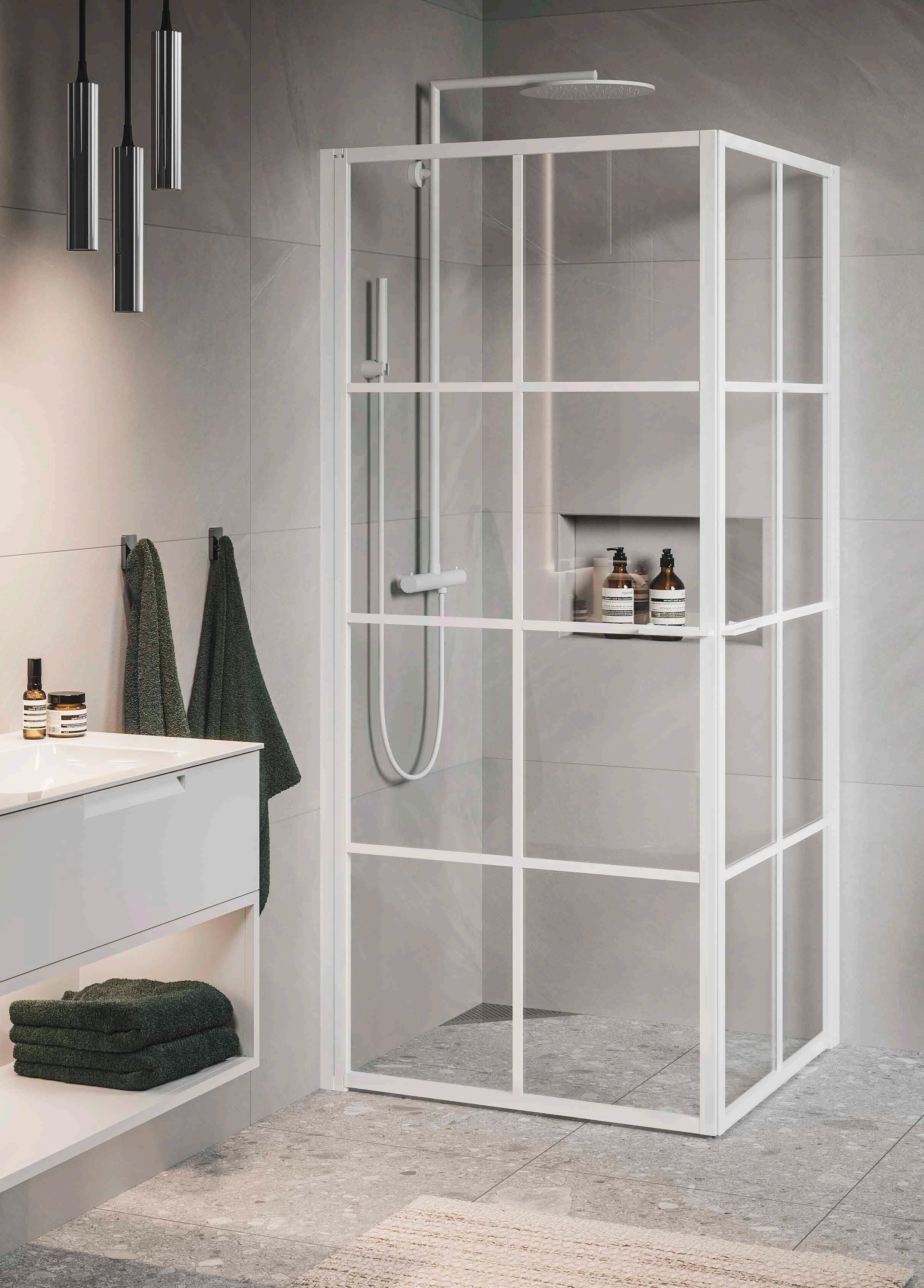 En dusch för den trendmedvetna som uppskattar en modern och industriell design med spännande och nyskapande detaljer. Välj mellan dramatisk mattsvart eller sobert vitt. En vit dusch fungerar perfekt i de romantiska eller klassiska badrummen där huset har spröjsade fönster.