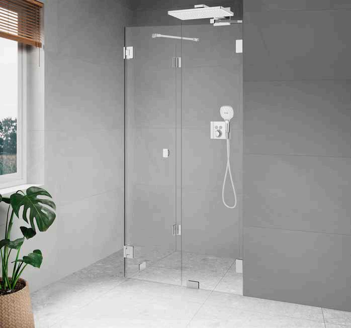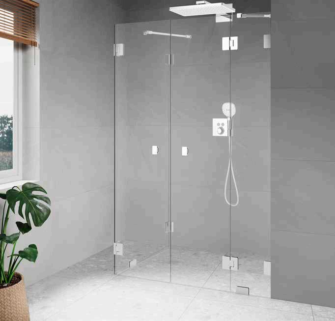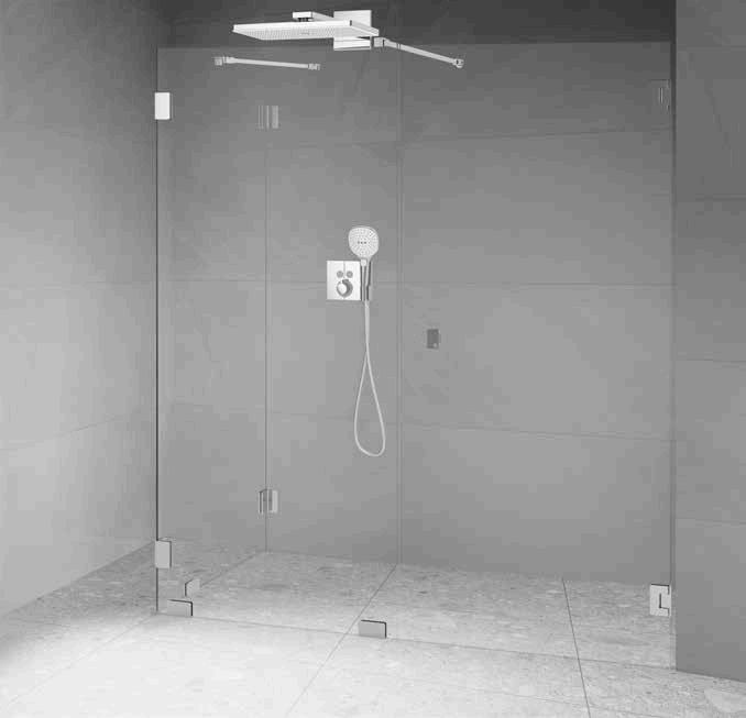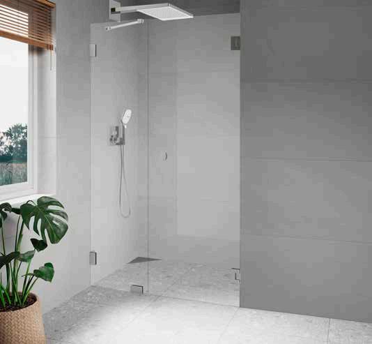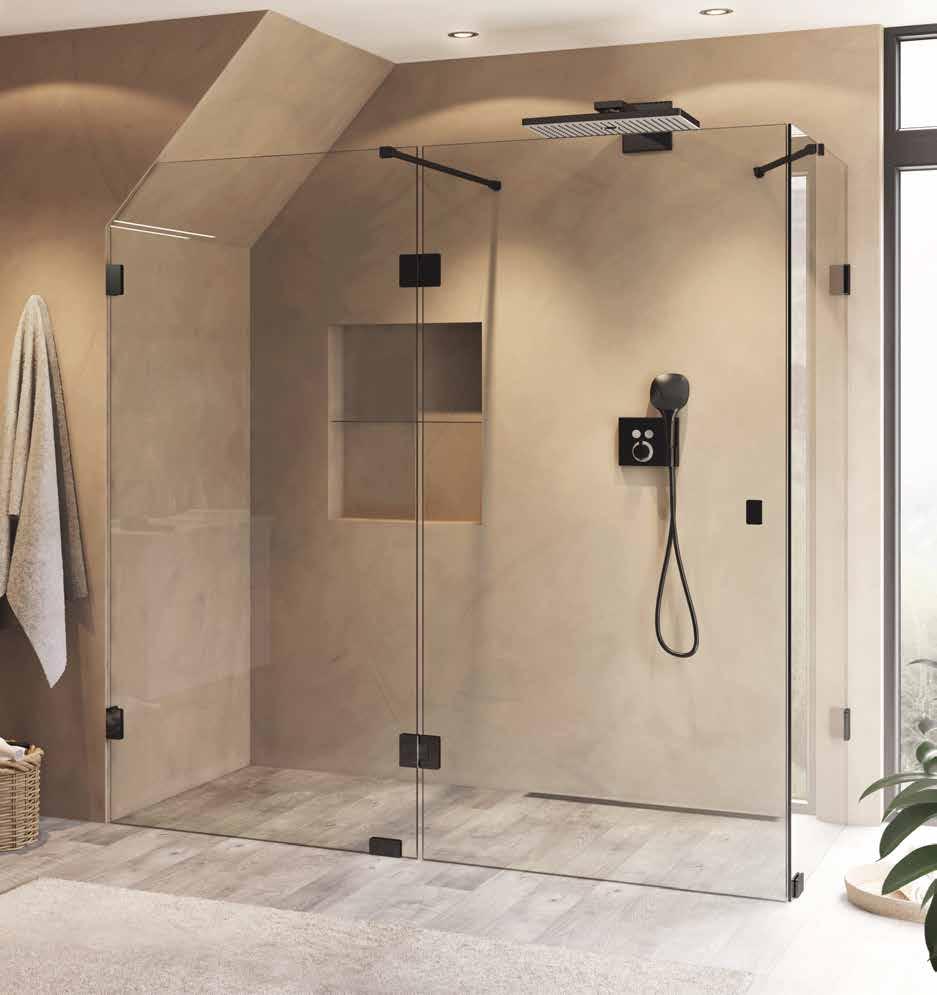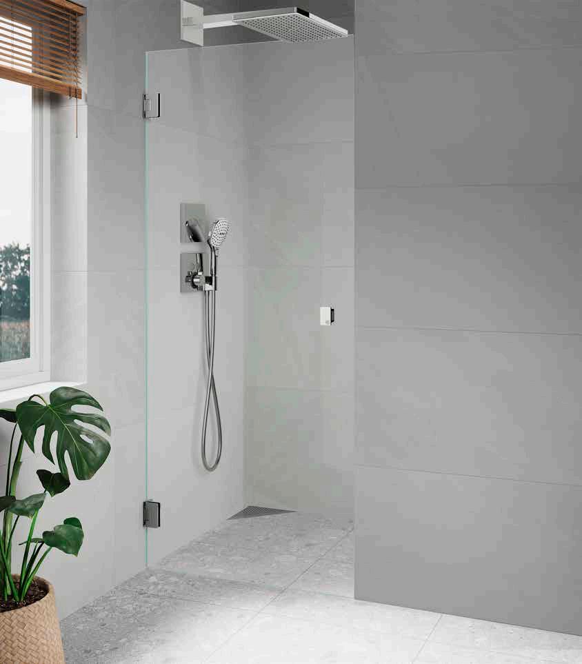 • Glas och profiler är intrigerade i varandra och skapar en vacker linje i badrummet