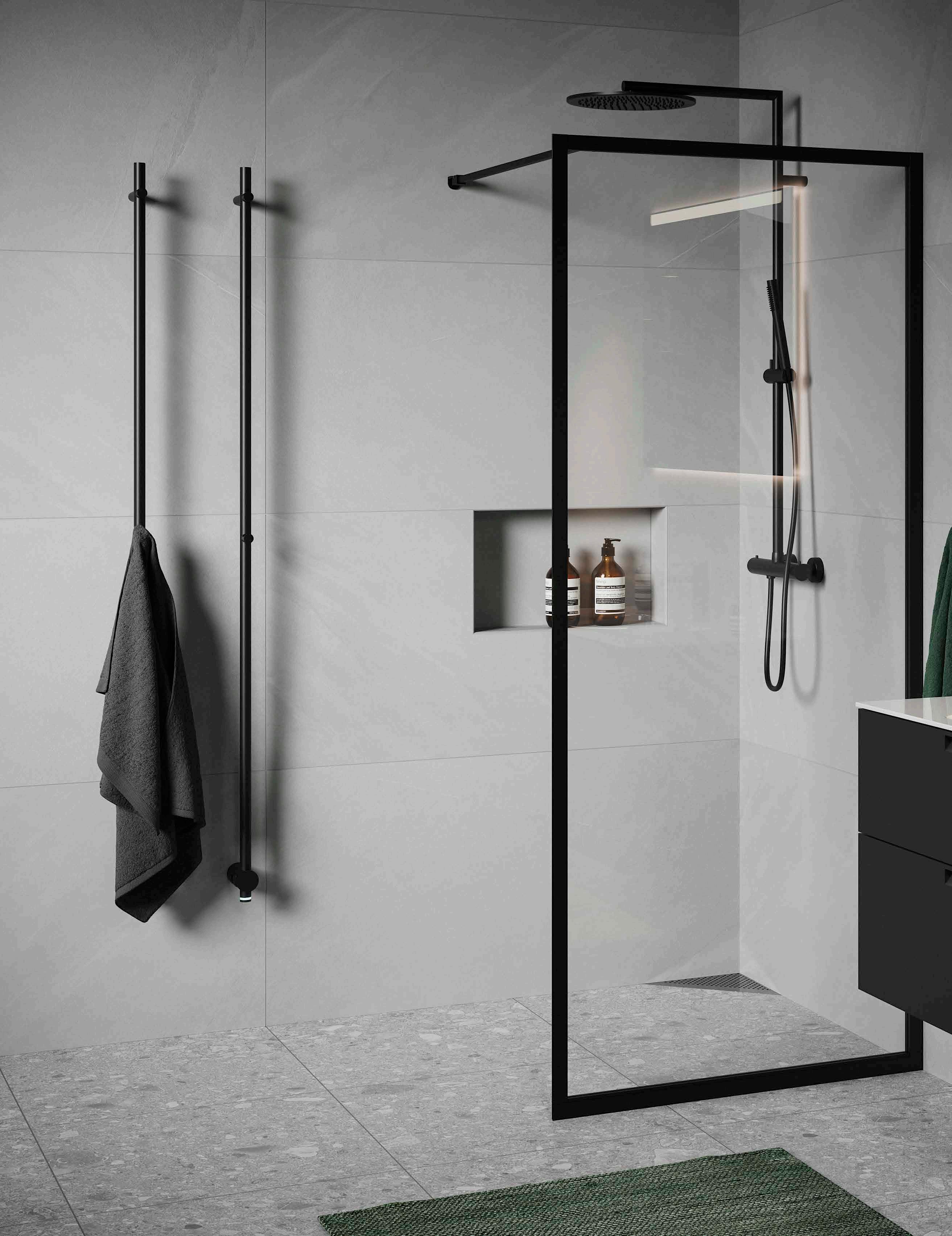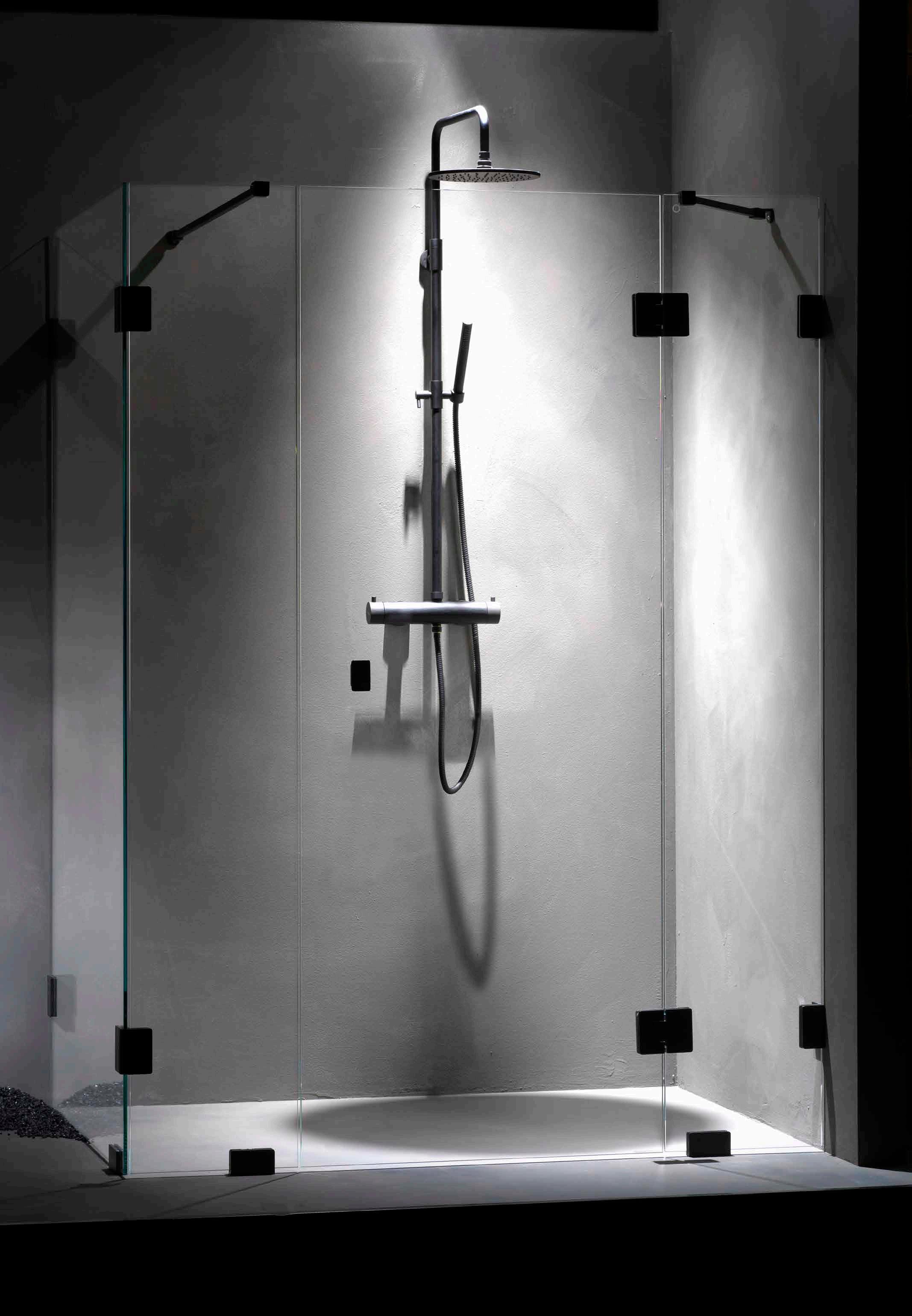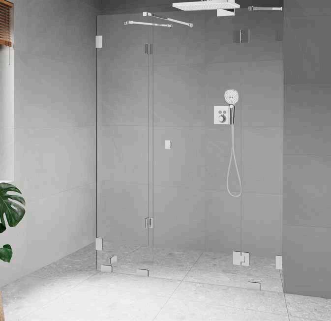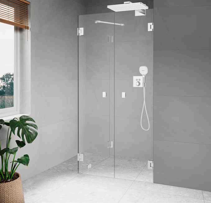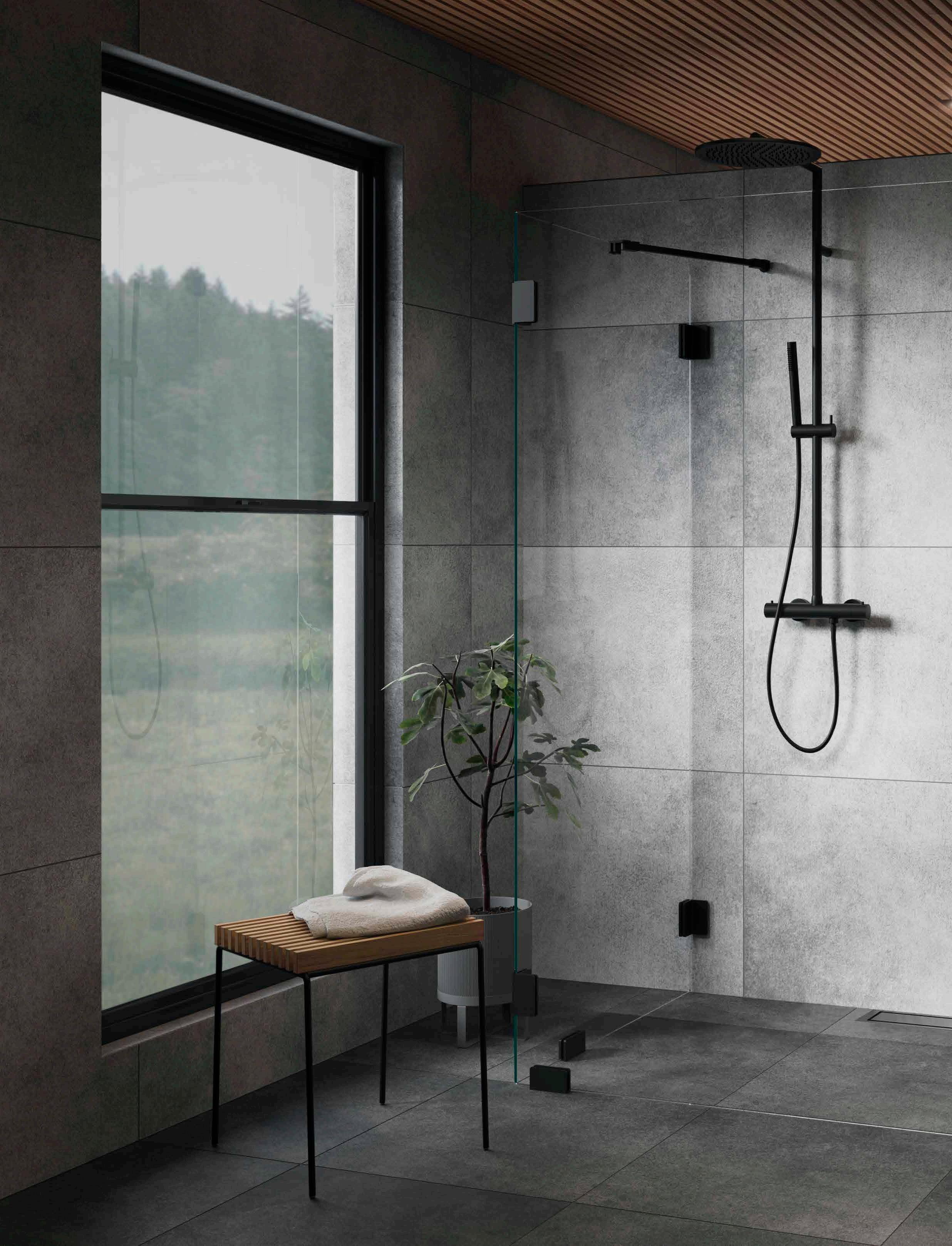 • Glas och profiler är intrigerade i varandra och skapar en vacker linje i badrummet