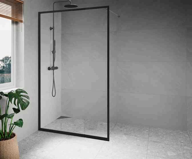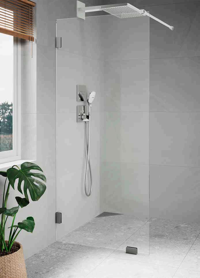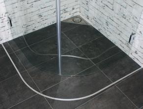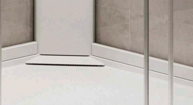 • Profiler längs väggen hjälper till att hålla vattnet inne i duschen