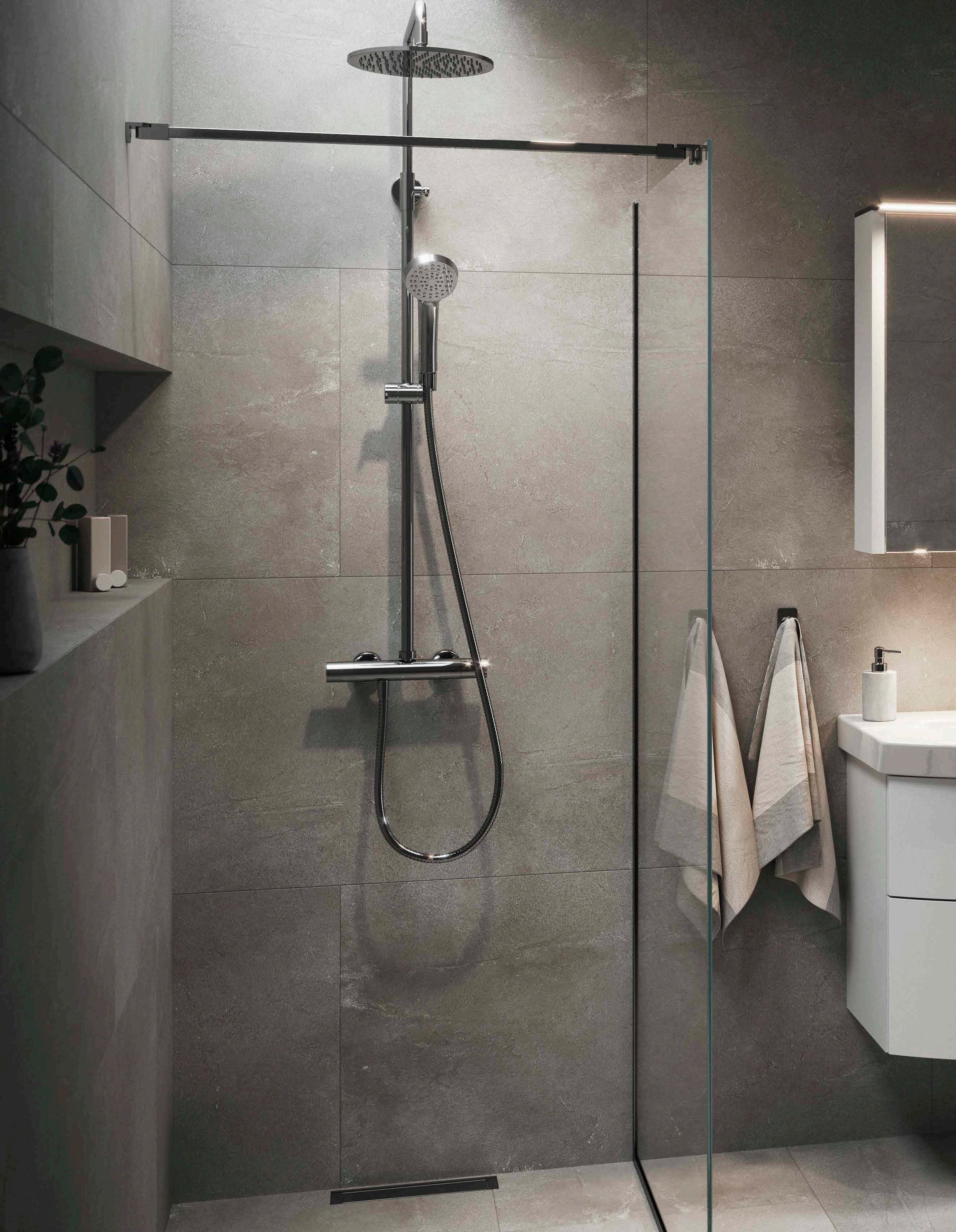 • Sätt in en stor 1200 eller 1400 duschvägg (Spirit Walk-in) mitt på väggen i ditt stora badrum för att skapa en pampig känsla.