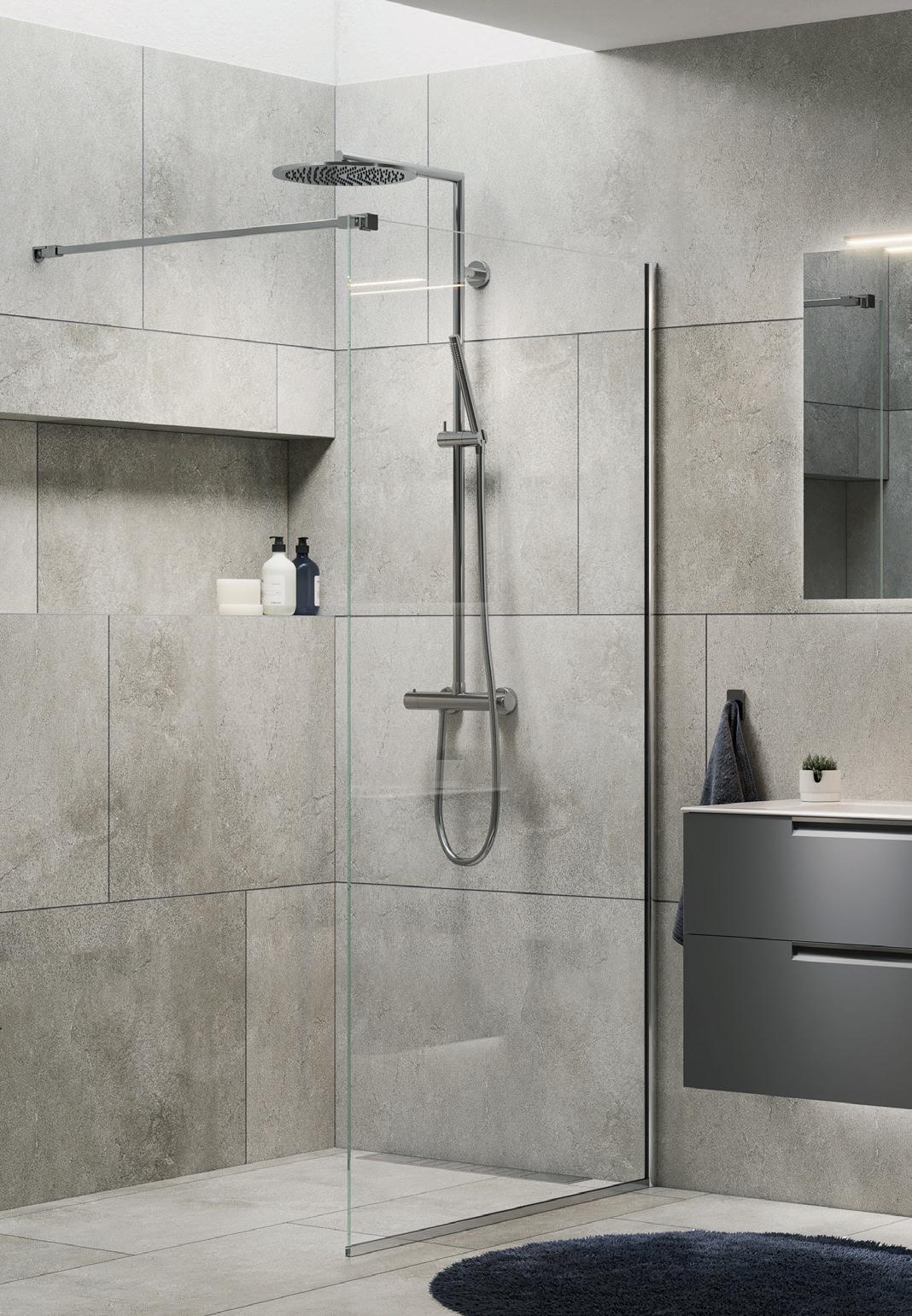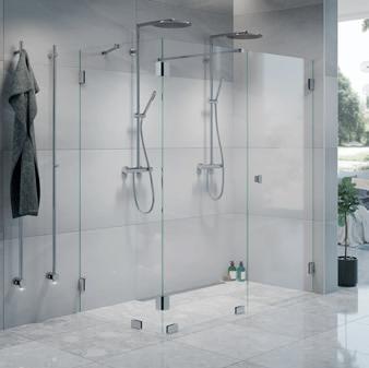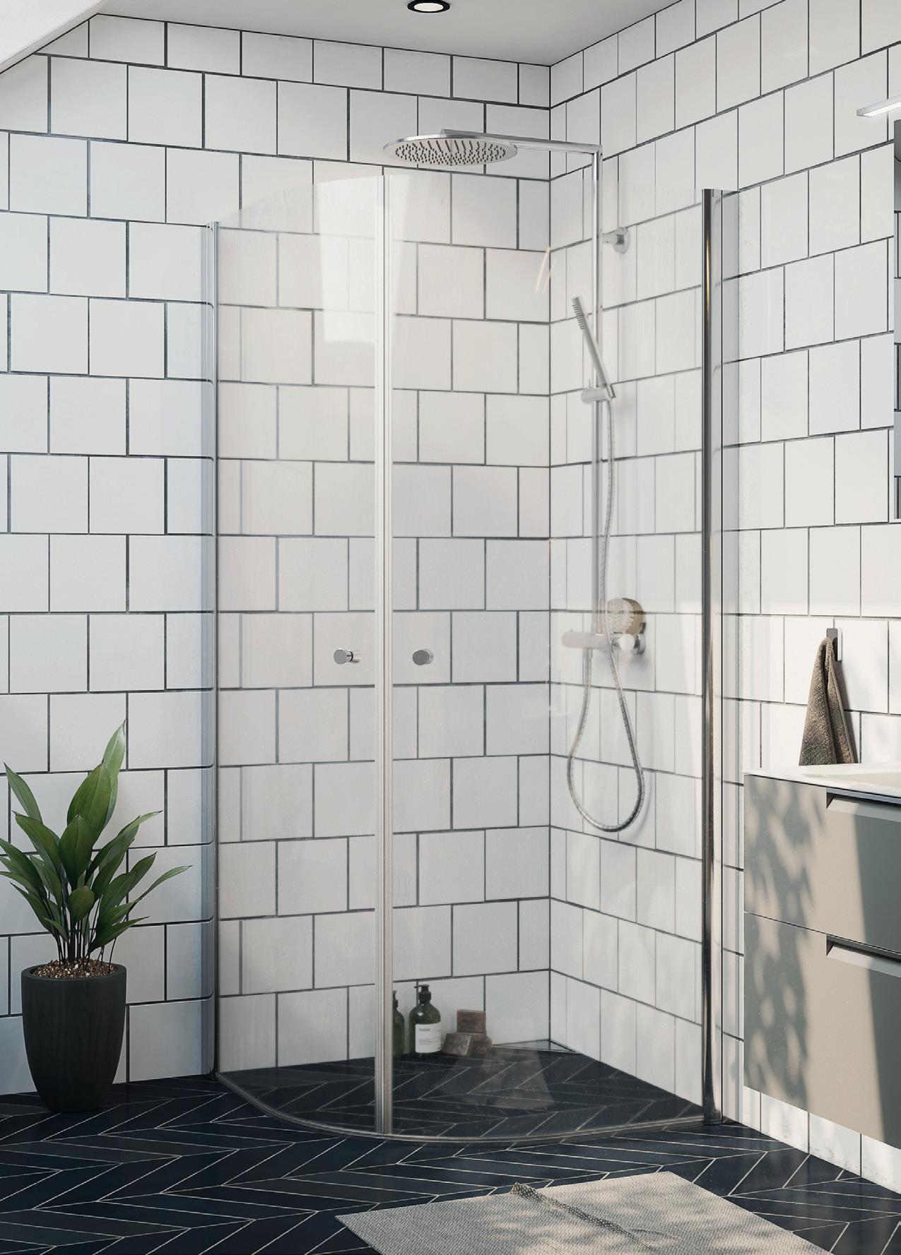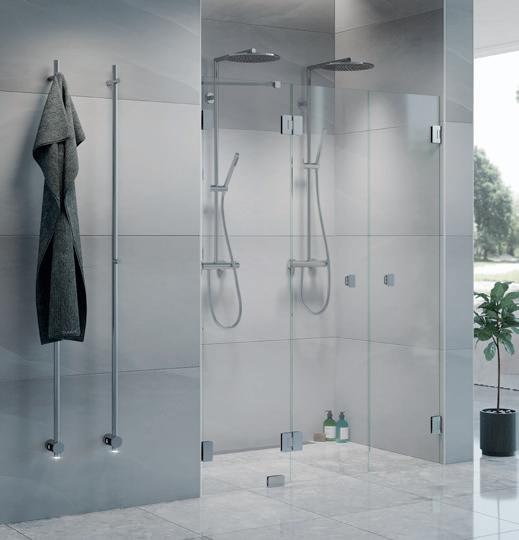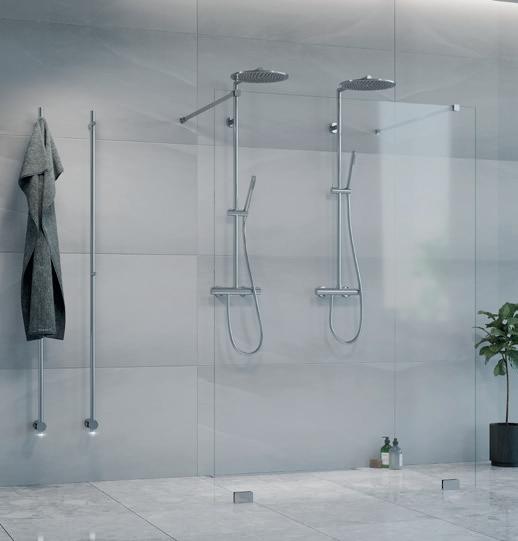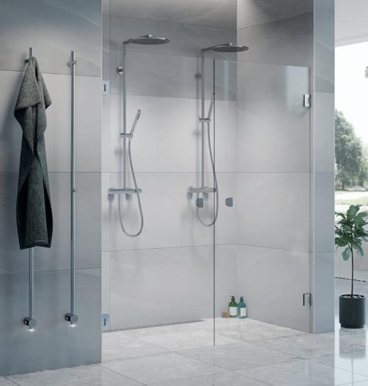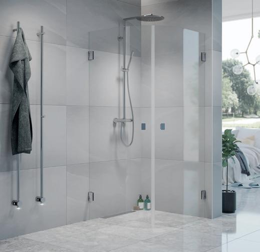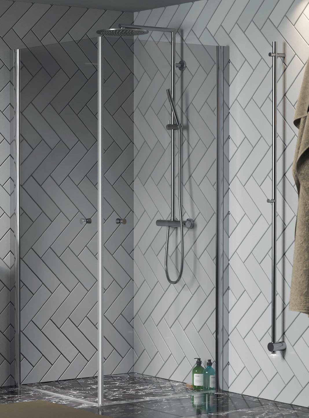 • Glass og profiler er integrert i hverandre og skaper en vakker linje i baderommet