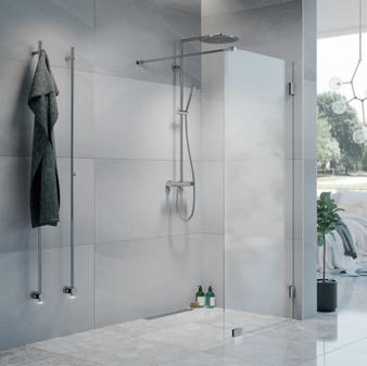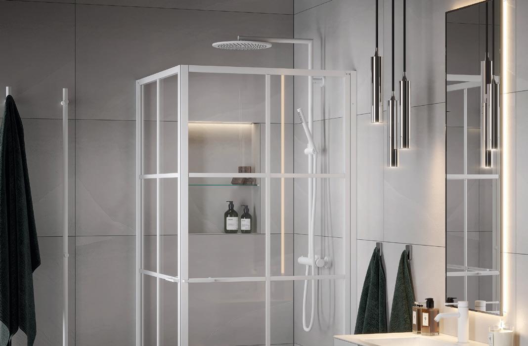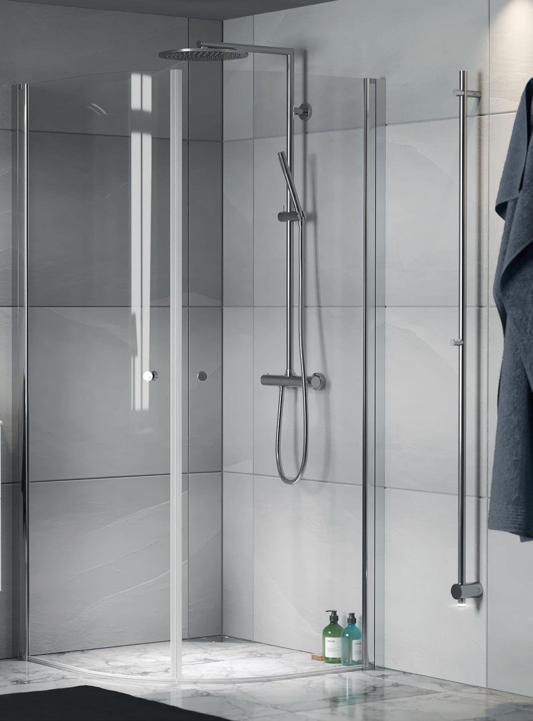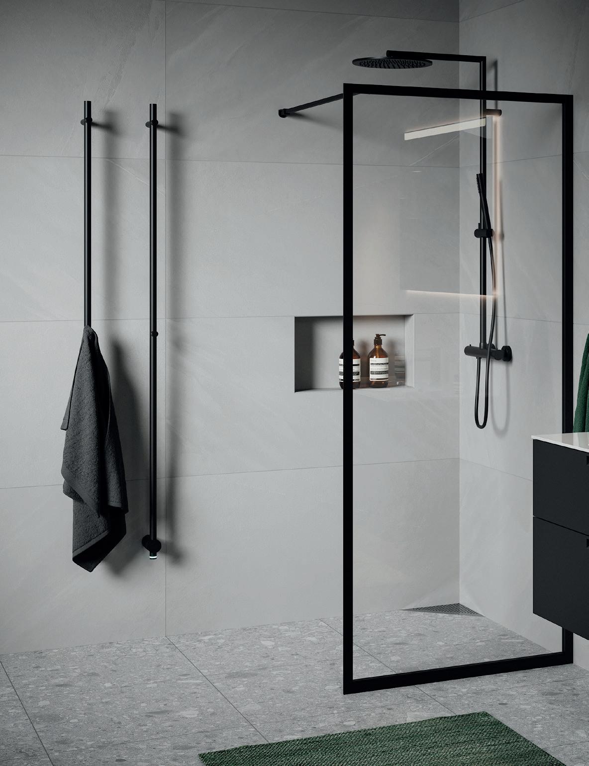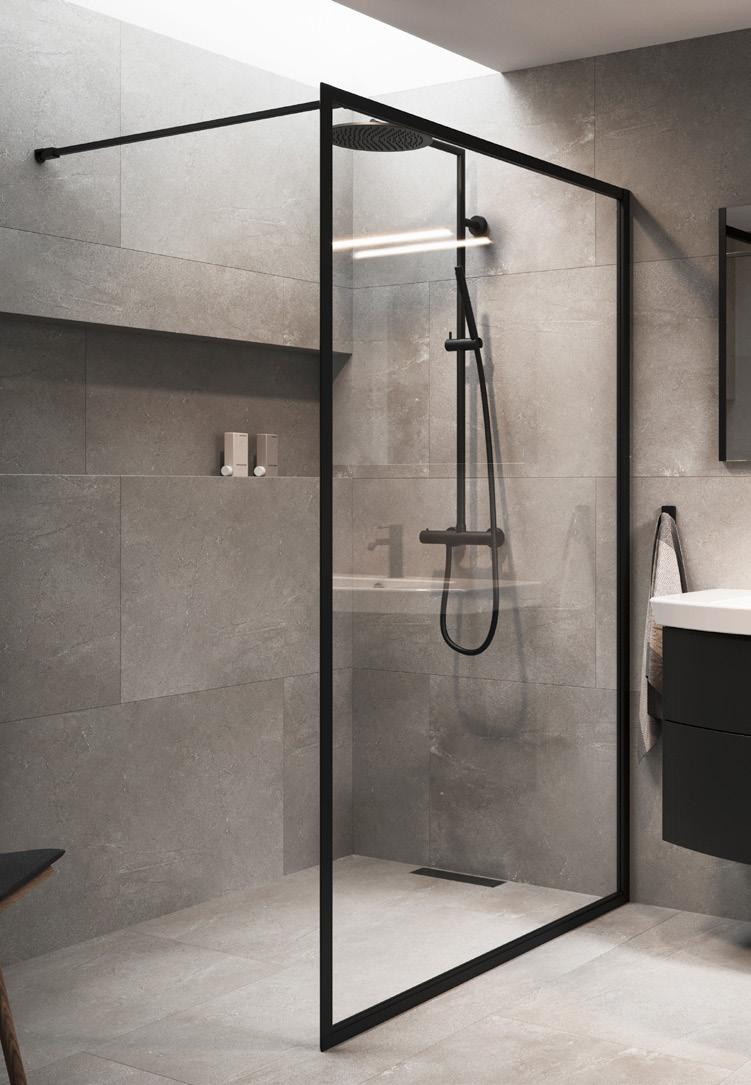 • Glass og profiler er integrert i hverandre og skaper en vakker linje i baderommet