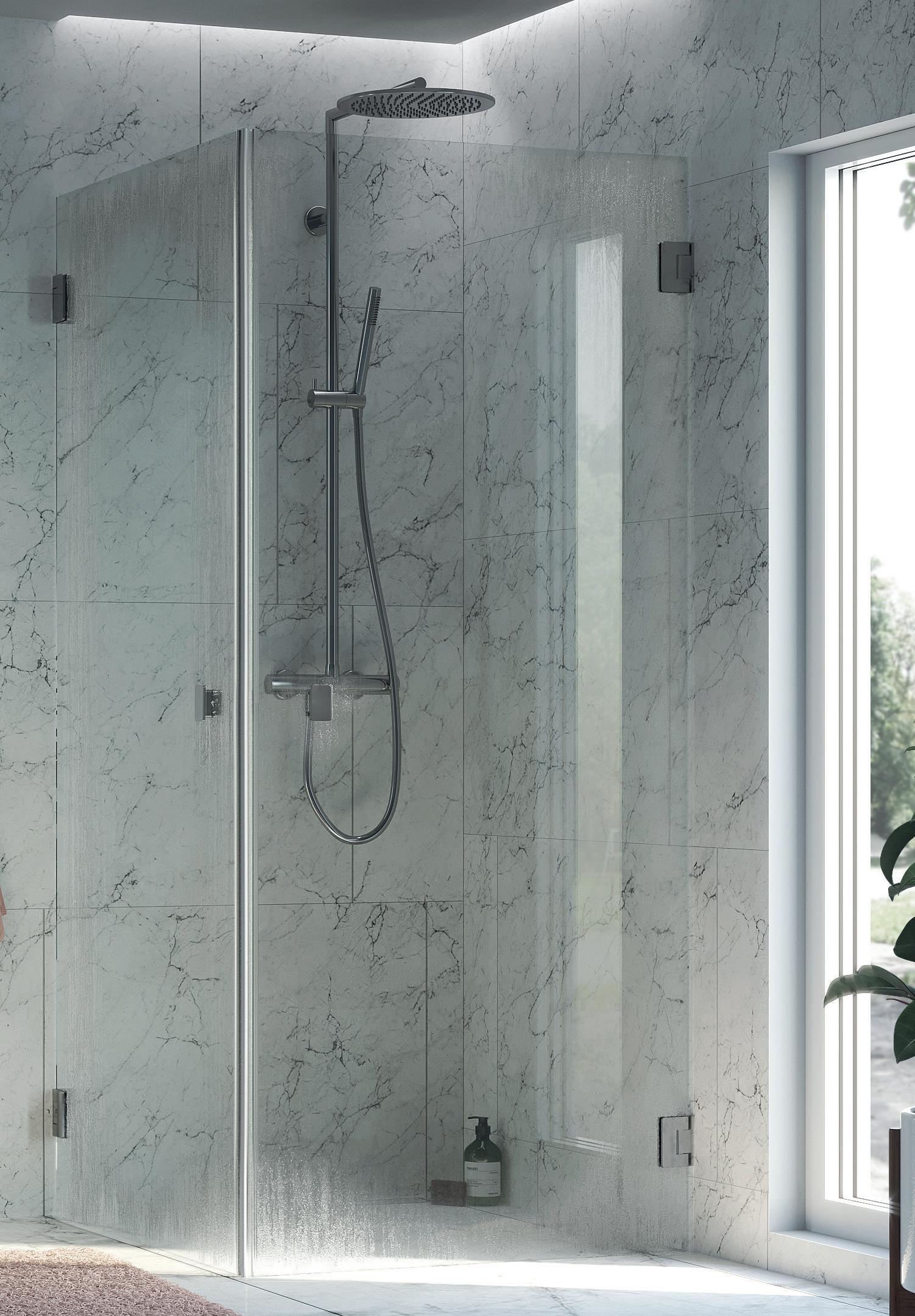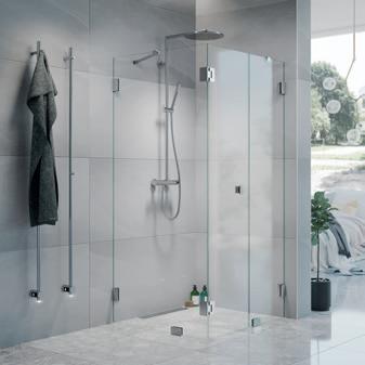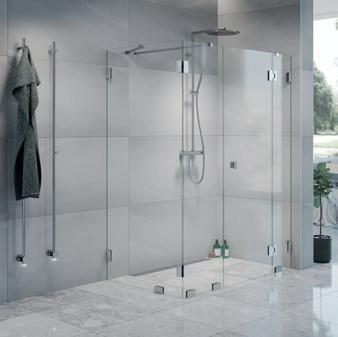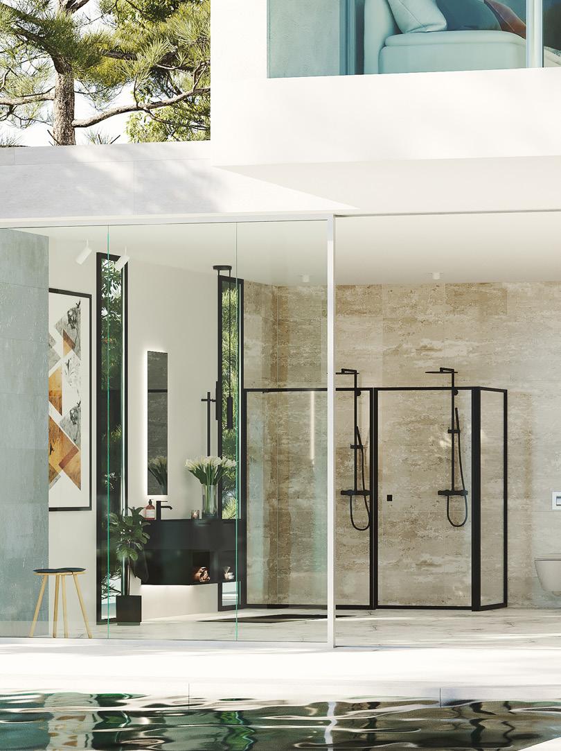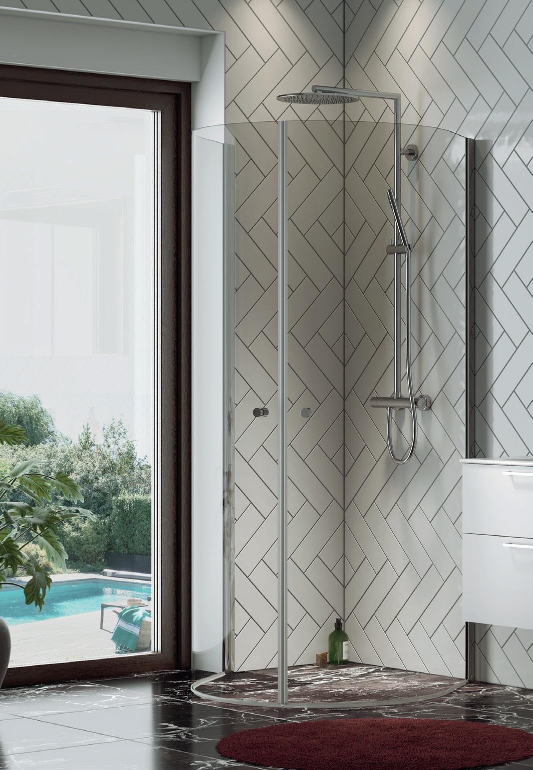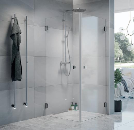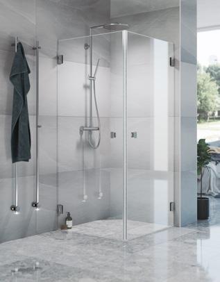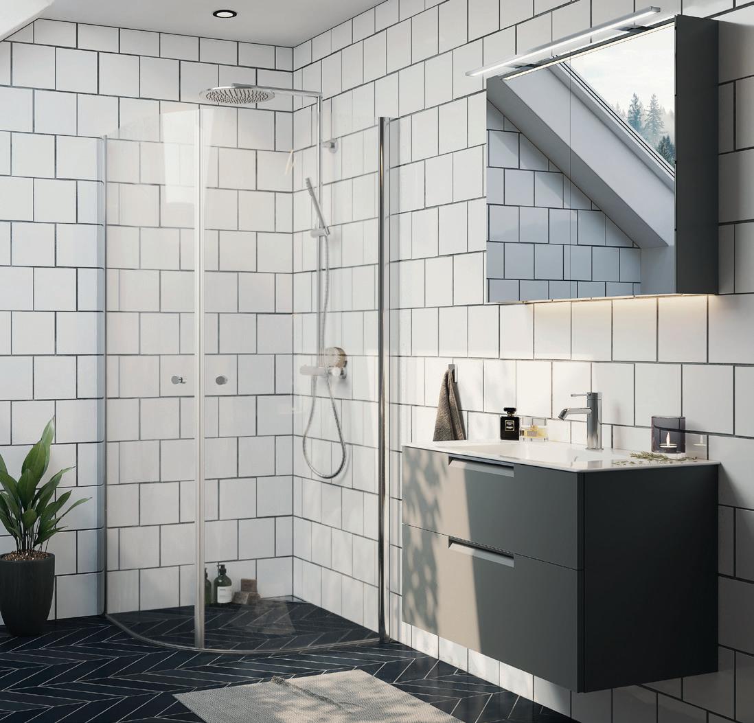 • Glass og profiler er integrert i hverandre og skaper en vakker linje i baderommet